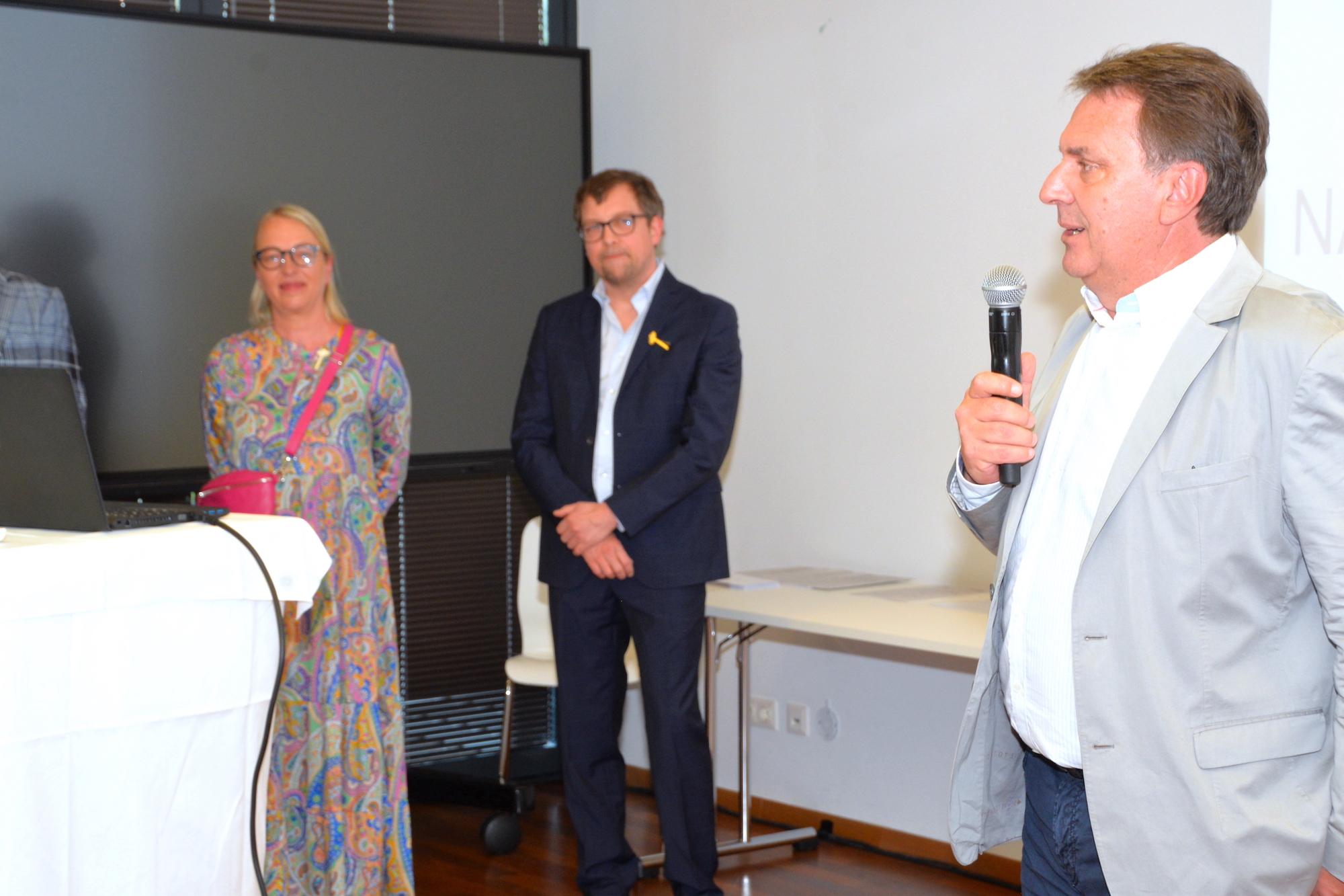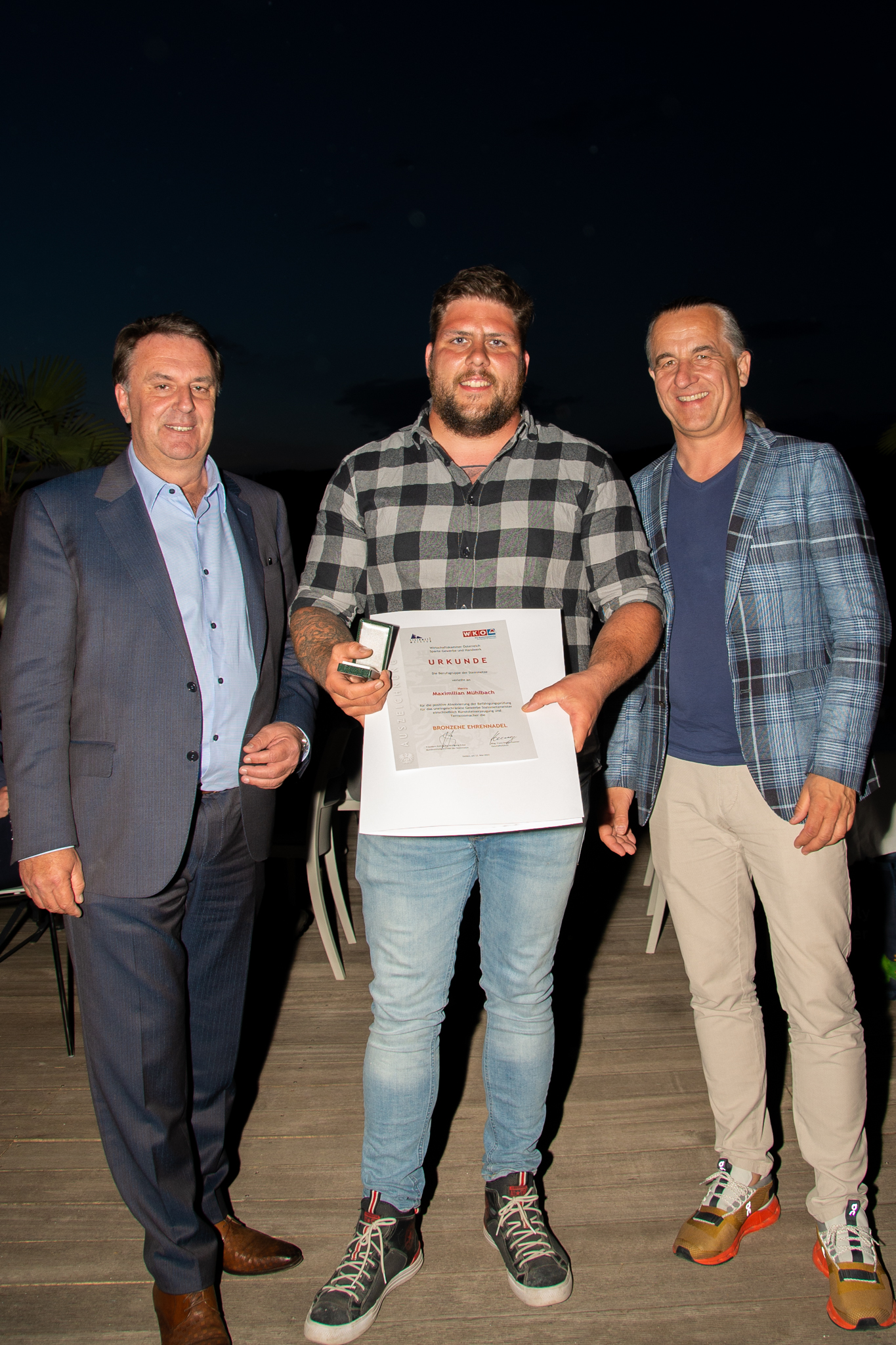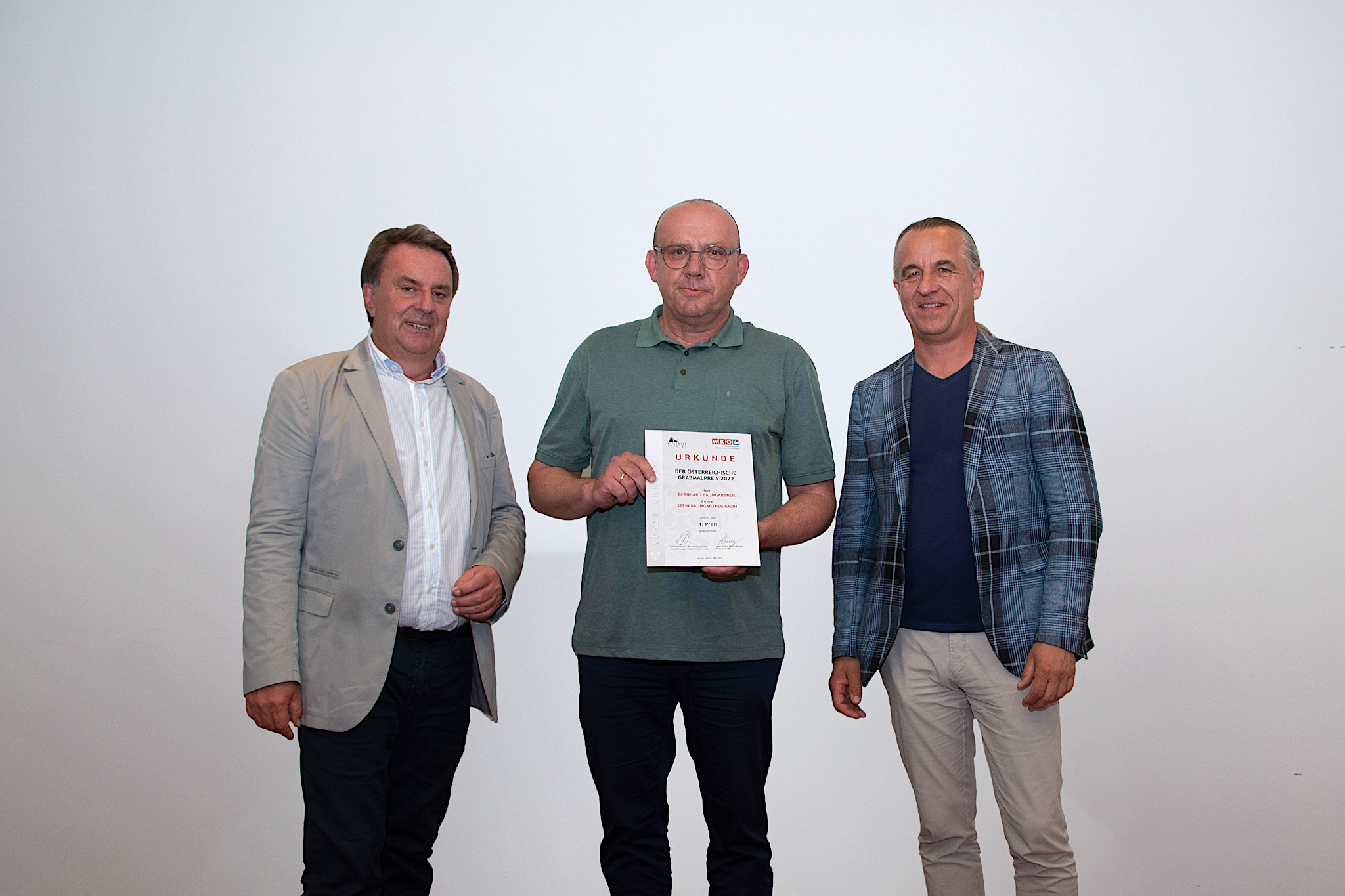 Ein wichtiges Highlight war die feierliche Verleihung der Natursteinpreise 2022: Dr. Arnold Rheintaler übernahm gemeinsam mit Bundesinnungsmeister Wirtschaftskammerpräsident NÖ KommR. Wolfgang Ecker die ehrenvolle Aufgabe Steinmetze für ihre herausragenden Tätigkeiten zu prämieren und ehren. Dabei durften sich besonders die jungen Steinmetze, wie u.a. von der Fachschule für Steingestaltung und Steintechnik in Hallein über den 1. Platz des „Lehrlingspreises“, mit dem Projekt „Kräuterschuh High Heel“ freuen. „Hier sehen Sie die Zukunft unserer Branche“, lobte Wolfgang Ecker die Fachschüler und betont dabei die Wichtigkeit der fachlichen Ausbildung als Steinmetz. Der 2. Platz ging an die LBS Schrems mit dem Projekt „Stehtisch mit Bedeutung“ und der 3. Platz an die LBS Murau mit dem Projekt „Bücherstapel der besonderen Art“.