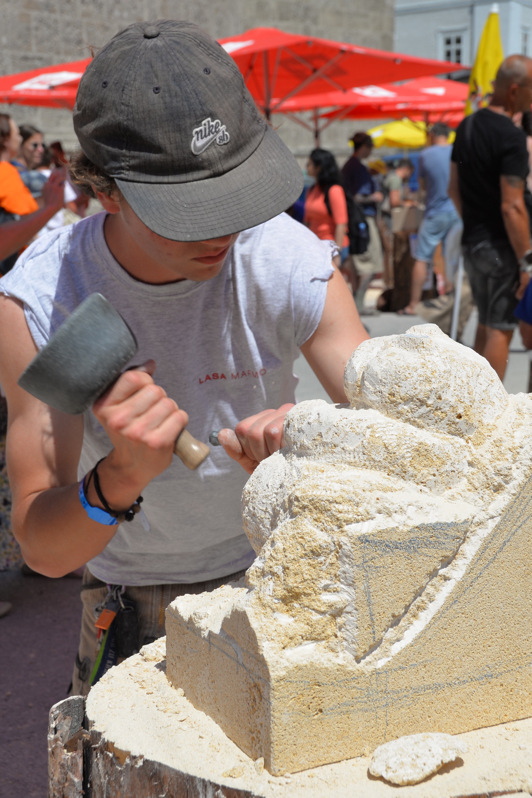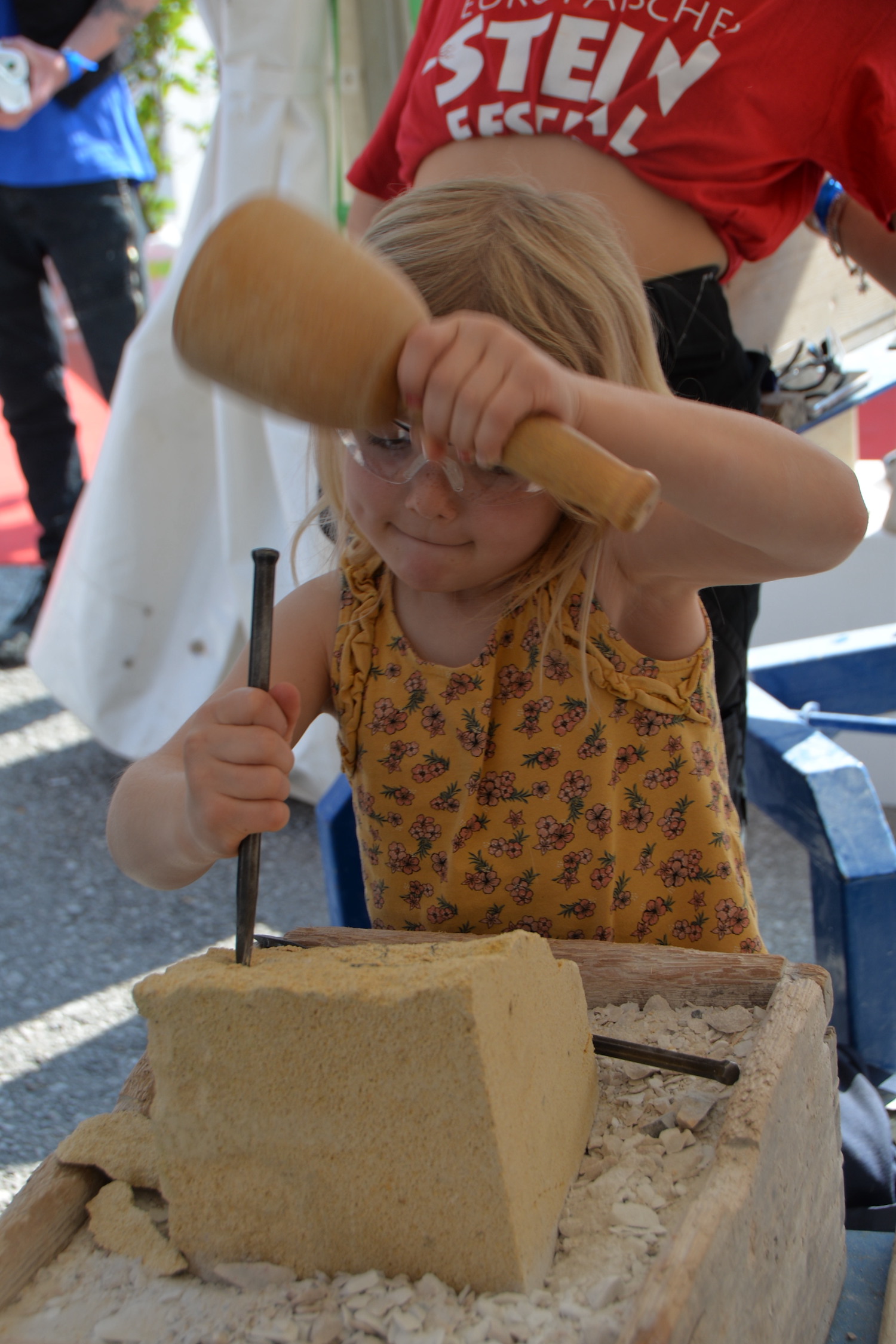 Während die Steinmetze eifrig an ihren Werkstücken arbeiteten, gab es für Besucher des Steinfestivals noch mehr zu erleben. Eine lebende Werkstätte und eine Mitmach-Station bei der man sich selbst als Steinmetz versuchen konnte fand vor allem bei den jüngsten Besuchern großen Anklang. Auch die Ausstellung der Design-Objekte der HTL Hallein wurde viel bestaunt. Im Festzelt wartete nicht nur Verpflegung auf die Gäste, sondern es wurde abends auch Livemusik mit der „Band Exit 207“ geboten und viele nutzen die Chance auf ein gemütliches Beisammensein.