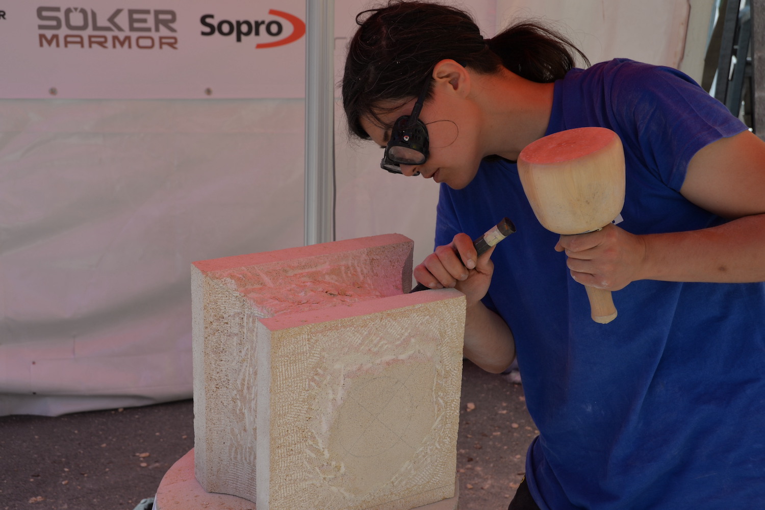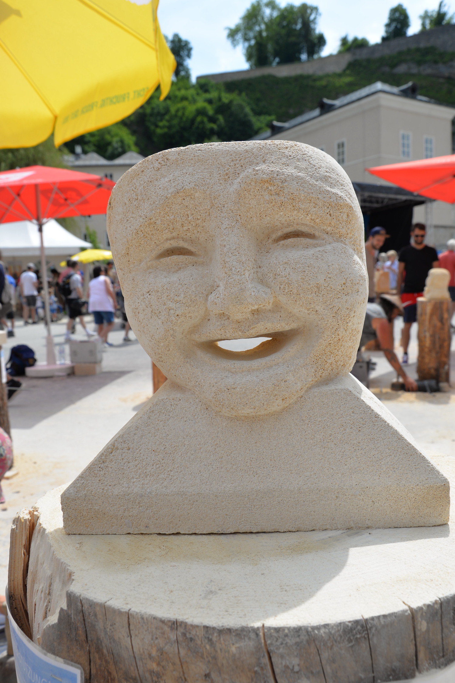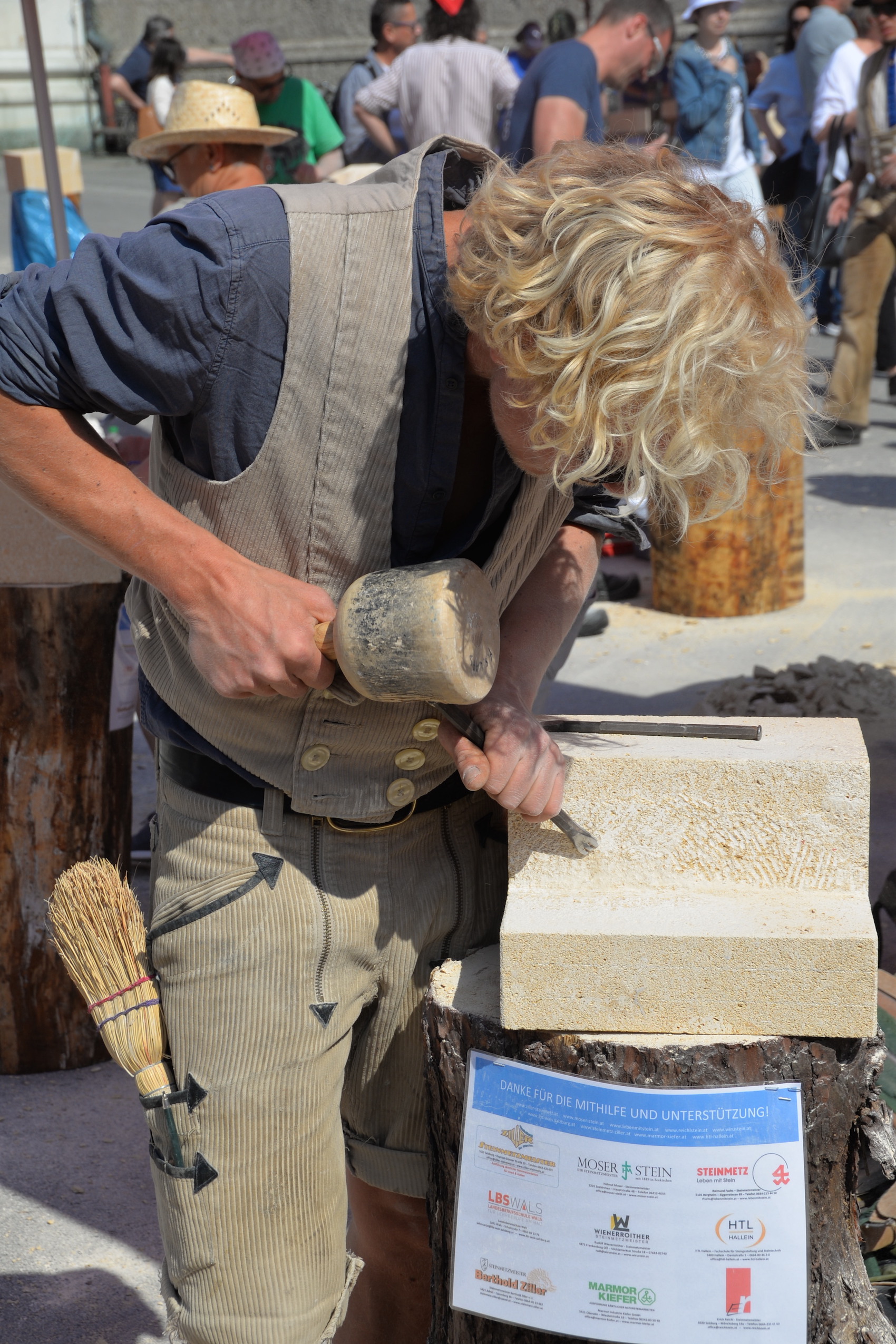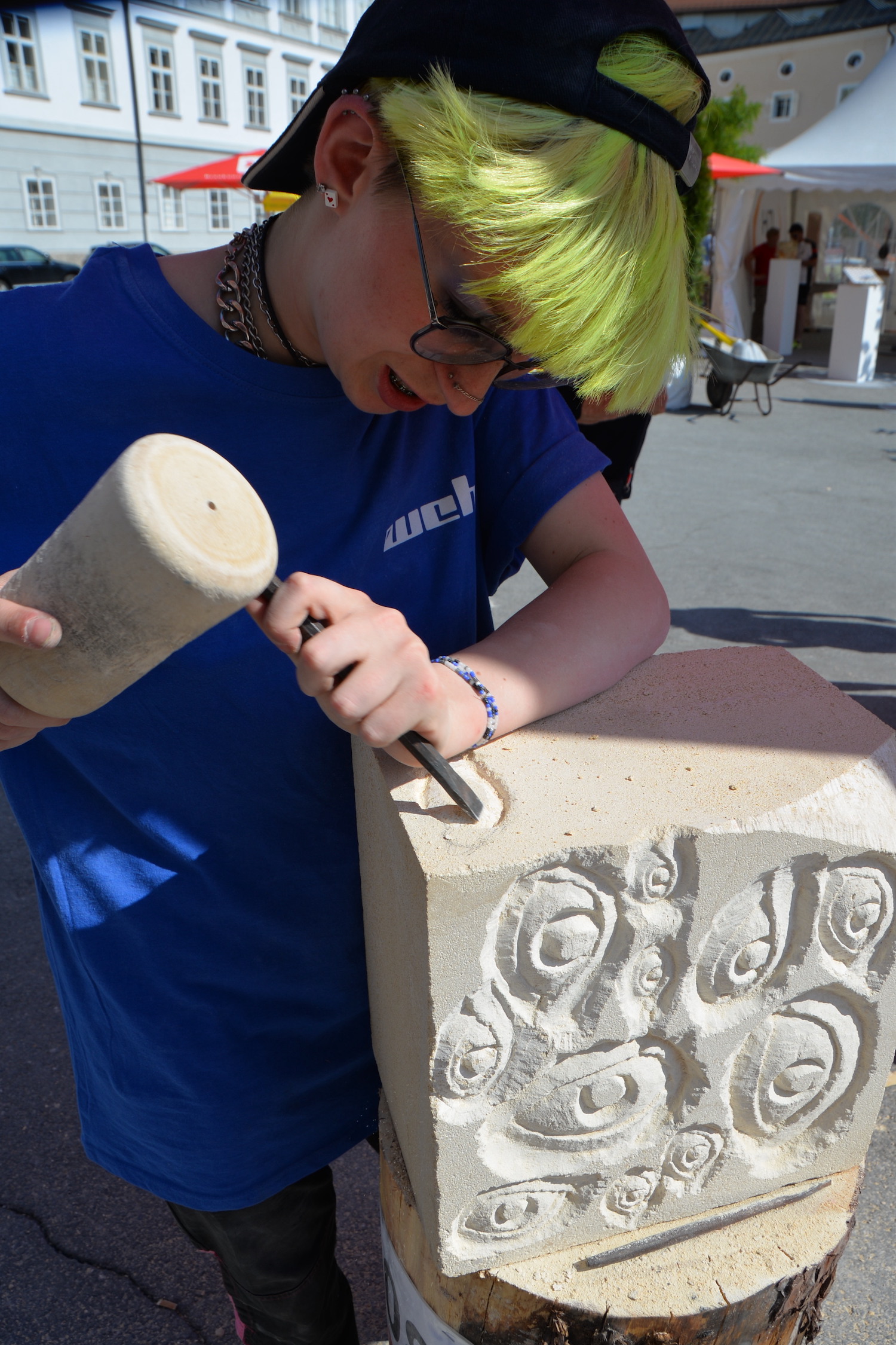 Am 03. und 04. Juni 2023 stand der Kapitelplatz in Salzburg ganz im Zeichen der Steinmetz-Kunst. Rund 110 Teilnehmende aus 12 verschiedenen Nationen demonstrierten live vor Ort ihr Können. Zahlreiche Besucher blickten begeistert den internationalen Steinmetzen und Bildhauern dabei über die Schulter, während diese im Wettbewerb ihre Skulpturen zum Thema „103 Jahre Salzburger Festspiele“ aus St. Margarethener Kalksandstein meißelten. Auch die Fachschule für Steintechnik und Steingestaltung der HTL Hallein feierte mit einer Präsentation von Designprojekten ihr 125-jähriges Bestehen im Zuge des Steinfestivals und stellte ihre Ausbildungsschwerpunkte vor. Beeindruckend war der Klang von über hundert hämmernden und meißelnden Steinmetzen im Herzen der Salzburger Altstadt.