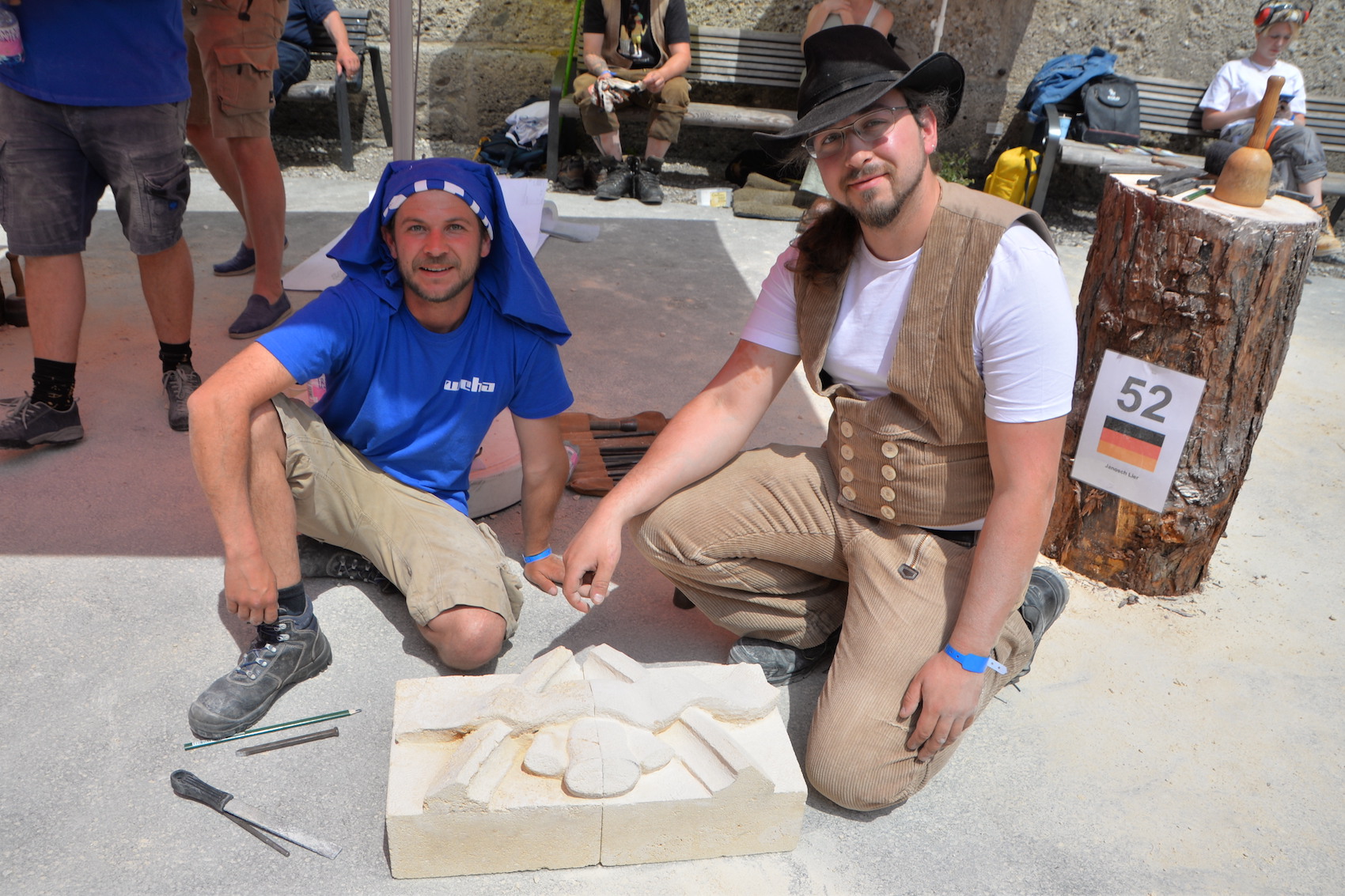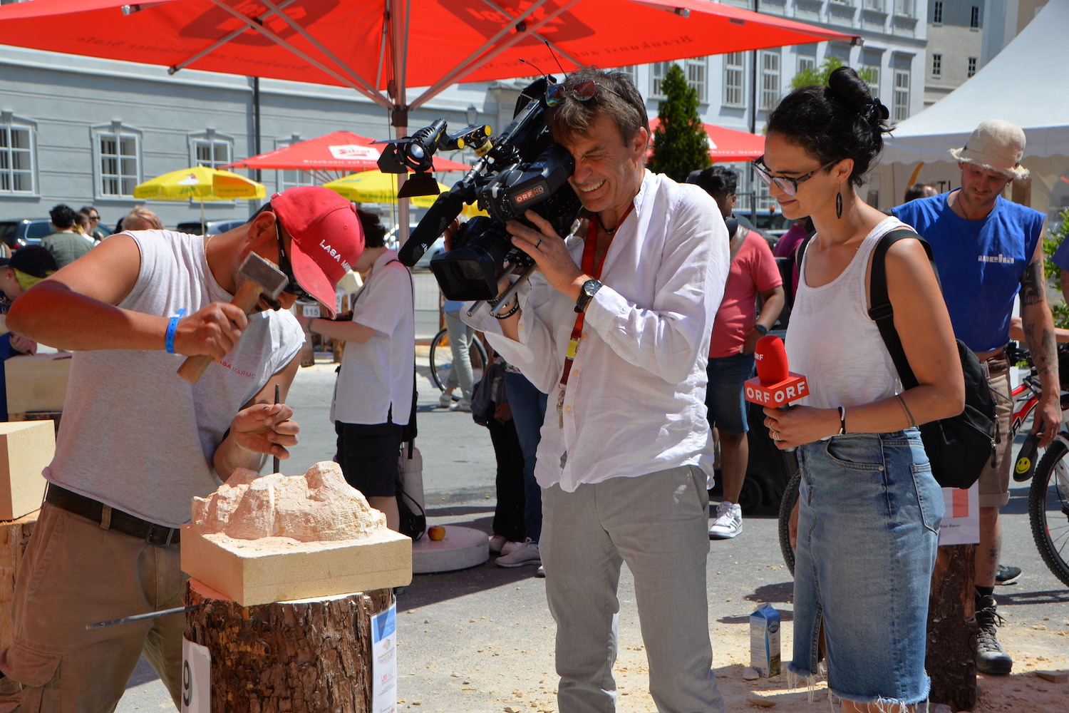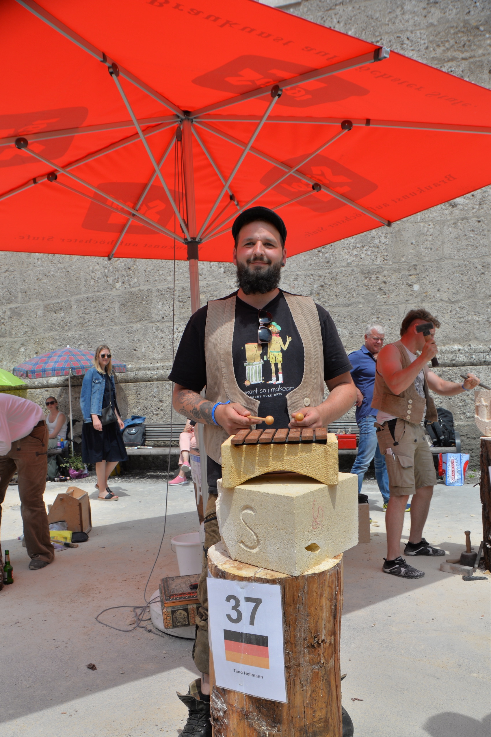 Beim Europäischen Steinfestival 2023 reisten die Teilnehmer aus ganz Österreich, Deutschland, England, Schweiz, Italien, Frankreich und Ungarn an. Sogar Steinmetze aus Kanada und Peru ließen es sich nicht nehmen in ihrer Freizeit dabei zu sein und ihren Beruf in Salzburg gemeinsam zu feiern. Dank des hohen Gemeinschaftssinns in der internationalen Steinmetz-Community, dem wunderbar sonnigen Wetter und sehr vielen Besucher war die Stimmung am Kapitelplatz in Salzburg ausgezeichnet.