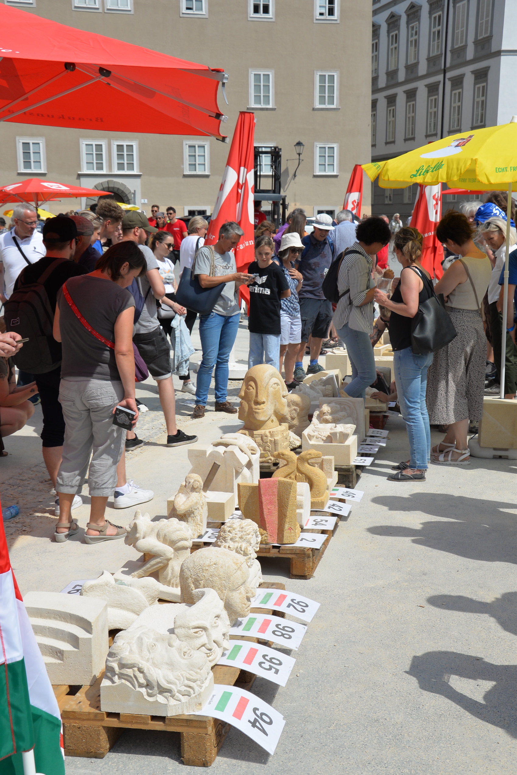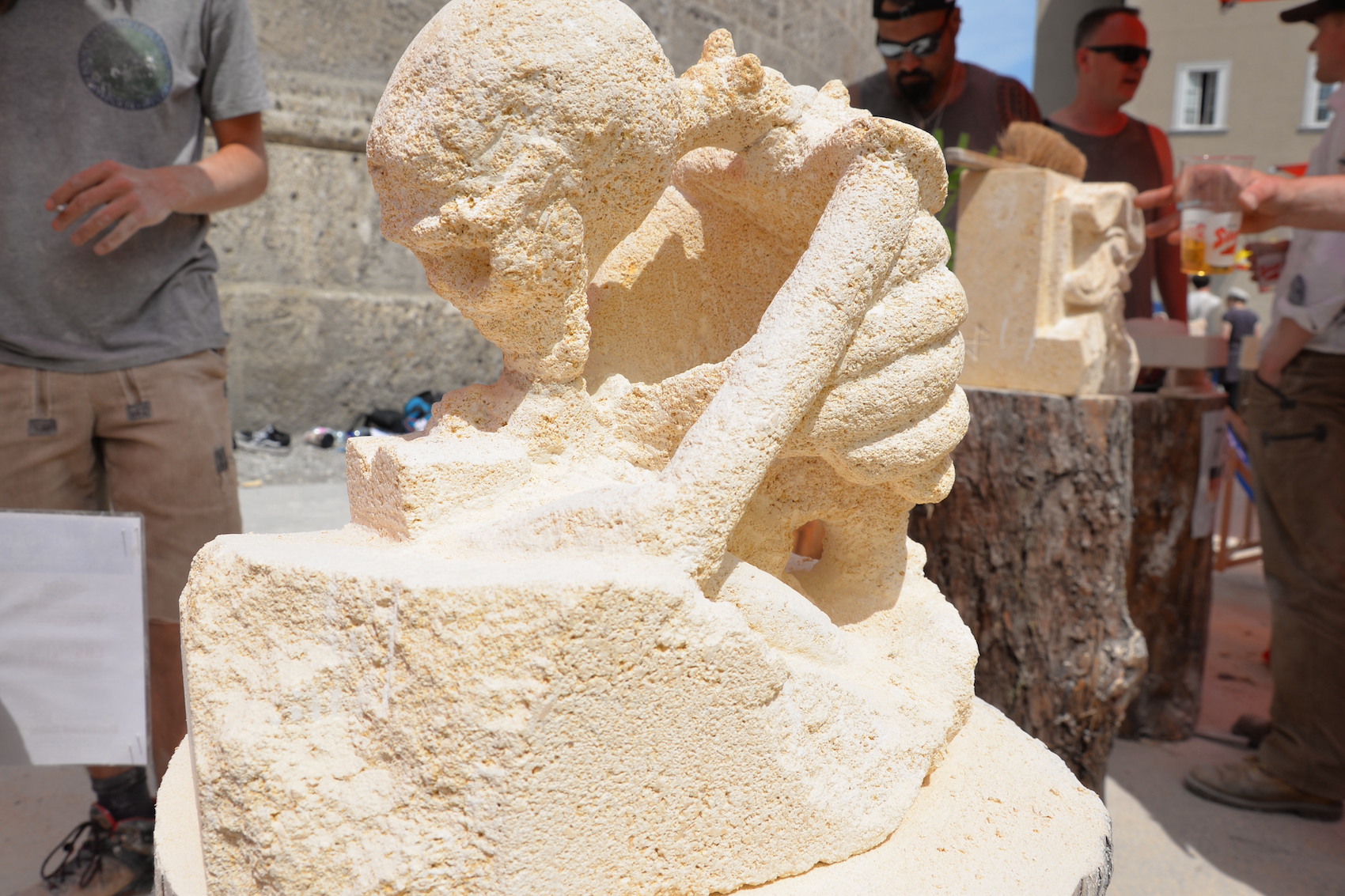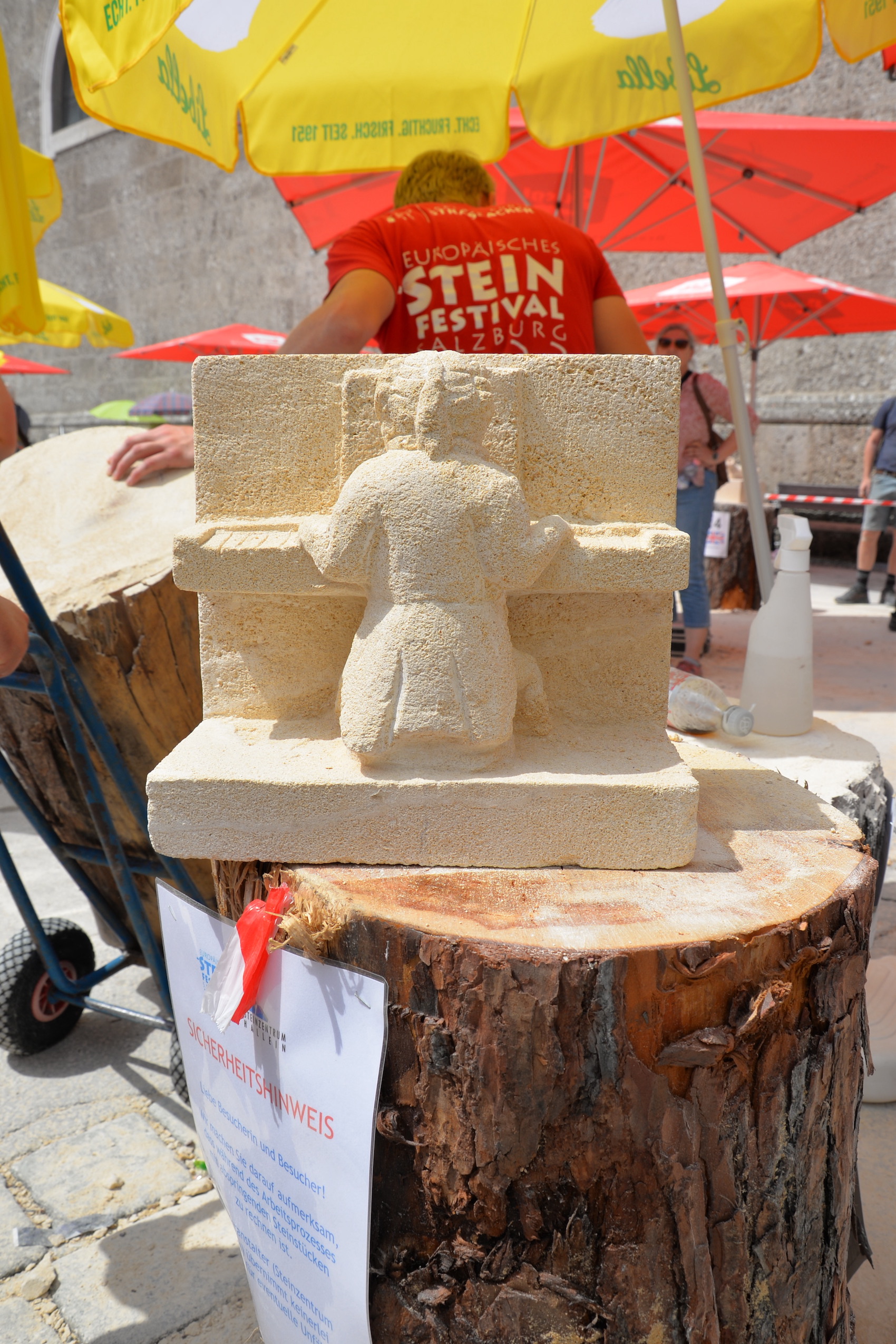 Am 03. und 04. Juni 2023 stand der Kapitelplatz in Salzburg ganz im Zeichen der Steinmetz-Kunst. Rund 110 Teilnehmende aus 12 verschiedenen Nationen demonstrierten live vor Ort ihr Können. Zahlreiche Besucher blickten begeistert den internationalen Steinmetzen und Bildhauern dabei über die Schulter, während diese im Wettbewerb ihre Skulpturen zum Thema „103 Jahre Salzburger Festspiele“ aus St. Margarethener Kalksandstein meißelten. Auch die Fachschule für Steintechnik und Steingestaltung der HTL Hallein feierte mit einer Präsentation von Designprojekten ihr 125-jähriges Bestehen im Zuge des Steinfestivals und stellte ihre Ausbildungsschwerpunkte vor. Beeindruckend war der Klang von über hundert hämmernden und meißelnden Steinmetzen im Herzen der Salzburger Altstadt.