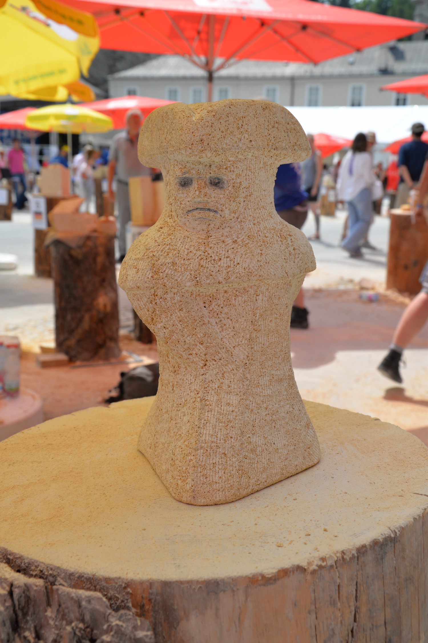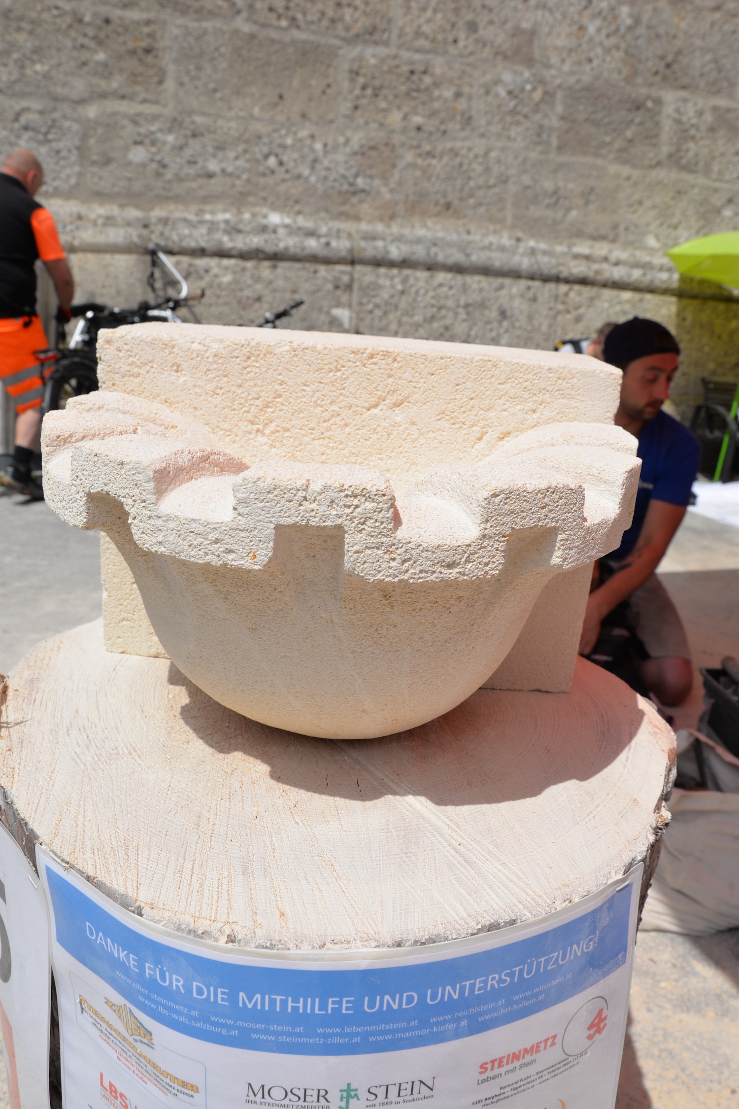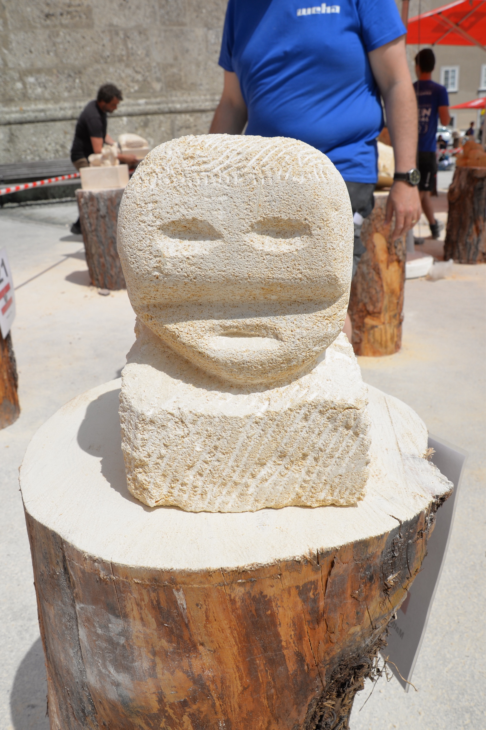 Am 03. und 04. Juni 2023 stand der Kapitelplatz in Salzburg ganz im Zeichen der Steinmetz-Kunst. Rund 110 Teilnehmende aus 12 verschiedenen Nationen demonstrierten live vor Ort ihr Können. Zahlreiche Besucher blickten begeistert den internationalen Steinmetzen und Bildhauern dabei über die Schulter, während diese im Wettbewerb ihre Skulpturen zum Thema „103 Jahre Salzburger Festspiele“ aus St. Margarethener Kalksandstein meißelten. Auch die Fachschule für Steintechnik und Steingestaltung der HTL Hallein feierte mit einer Präsentation von Designprojekten ihr 125-jähriges Bestehen im Zuge des Steinfestivals und stellte ihre Ausbildungsschwerpunkte vor. Beeindruckend war der Klang von über hundert hämmernden und meißelnden Steinmetzen im Herzen der Salzburger Altstadt.