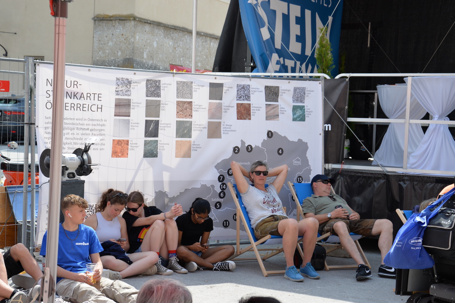 Während die Steinmetze eifrig an ihren Werkstücken arbeiteten, gab es für Besucher des Steinfestivals noch mehr zu erleben. Eine lebende Werkstätte und eine Mitmach-Station bei der man sich selbst als Steinmetz versuchen konnte fand vor allem bei den jüngsten Besuchern großen Anklang. Auch die Ausstellung der Design-Objekte der HTL Hallein wurde viel bestaunt. Im Festzelt wartete nicht nur Verpflegung auf die Gäste, sondern es wurde abends auch Livemusik mit der „Band Exit 207“ geboten und viele nutzen die Chance auf ein gemütliches Beisammensein.