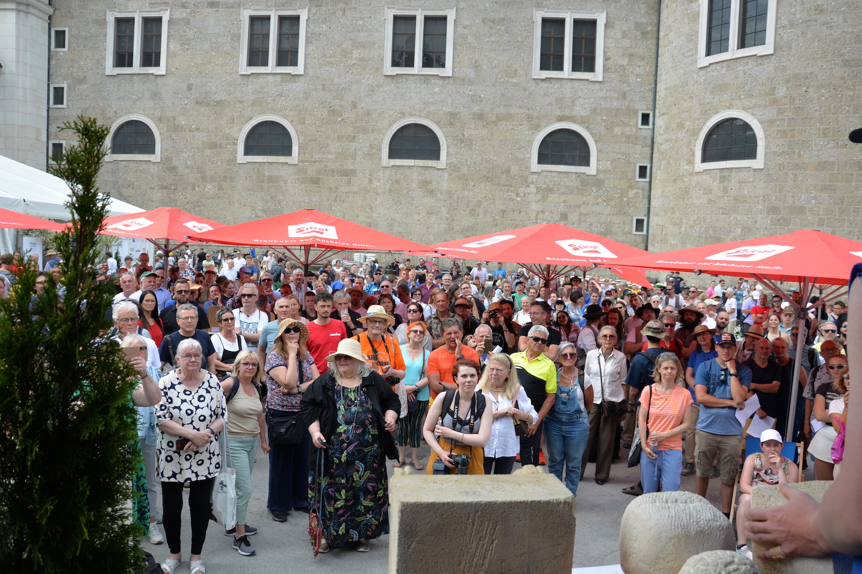 Beim Europäischen Steinfestival 2023 reisten die Teilnehmer aus ganz Österreich, Deutschland, England, Schweiz, Italien, Frankreich und Ungarn an. Sogar Steinmetze aus Kanada und Peru ließen es sich nicht nehmen in ihrer Freizeit dabei zu sein und ihren Beruf in Salzburg gemeinsam zu feiern. Dank des hohen Gemeinschaftssinns in der internationalen Steinmetz-Community, dem wunderbar sonnigen Wetter und sehr vielen Besucher war die Stimmung am Kapitelplatz in Salzburg ausgezeichnet.