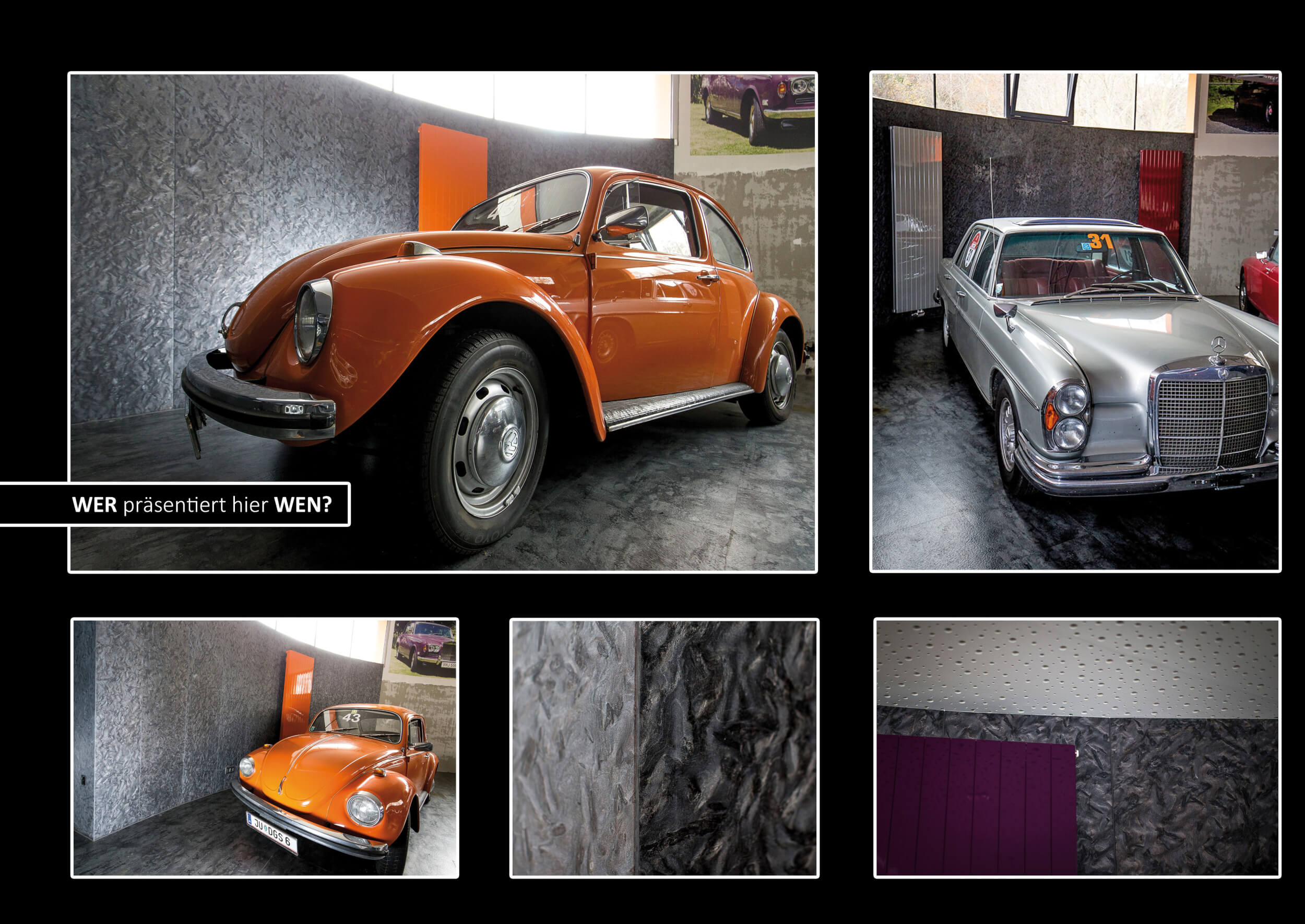 Die kreisrunde „Garage“ mit 16m! Durchmesser wurde umlaufend mit gebürsteten MATRIX Platten in max. Plattenlänge (= Höhe der Verkleidung) ausgeführt! Jedes Fahrzeug hat „seinen“ Heizkörper in Wagenfarbe lackiert und wenn der Tischler heuer hoffentlich fertig wird bekommt auch der Heizkörper vom Bild rechts unten „Sein“ Fahrzeug – einen Rolls Royce in Dunkel-Magenta!!! NEUGIERIG? - Sollte der Tischler zeitgerecht fertig werden (es gibt auch steinmetzmäßig noch einiges zu tun) gibt’s nächstes Jahr das ganz fertige Projekt mit einem Ausschnitt des Magenta Fahrzeuges!? (Zur Probe haben wir ihn schon einmal eingeparkt!!) Der Matrix wurde gemeinsam mit Architekt/ Bauherrn und Steinmetz direkt in Verona in einer „2- tägigen, anstrengenden Klausur“ (mit orig. Farbkarten der Fahrzeuge) ausgewählt – dieser Naturstein mit seiner spektakulären, aber doch zurückhaltenden Optik/ Haptik war im Nachhinein gesehen die optimale Wahl, ALLE Fahrzeugfarben kommen perfekt zur Geltung.