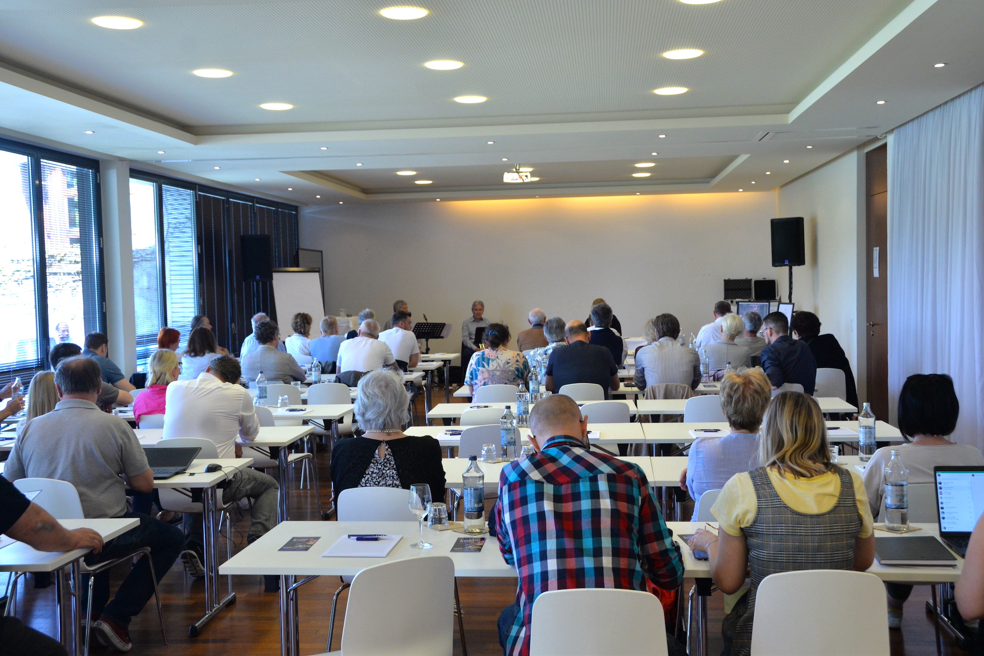 Rund 100 TeilnehmerInnen und zahlreiche Ehrengäste aus ganz Österreich folgten der Einladung des Steinzentrums Hallein zur Teilnahme an der traditionellen Bildungswoche der Steinmetze. Darunter waren Steinmetz-MeisterInnen und BetriebsinhaberInnen ebenso wie auch BildhauerInnen, FliesenlegerInnen und auch Betreiber von Steinbrüchen aus Österreich und Deutschland. Die hochkarätigen Fachvorträge und Podiumsdiskussionen drehten sich um die Nachhaltigkeit des zukunftsweisenden Baumateriales Naturstein, als auch z.B. neuen Konzepten zur Friedhofsgestaltung. So wurde zum Beispiel das Projekt „CUBO“ - ein Begegnungsort aus Stahl und Naturstein für Friedhöfe und öffentliche Plätze - vom deutschen Berufskollegen Detlef Kleineidam (Obermeister Steinmetzinnung Mannheim) vorgestellt. Aber auch die gewerkübergreifenden Tätigkeiten, wie zum Beispiel die Kooperation zur Entwicklung von Normen, fand Raum zum Gespräch bei der Bildungswoche.
