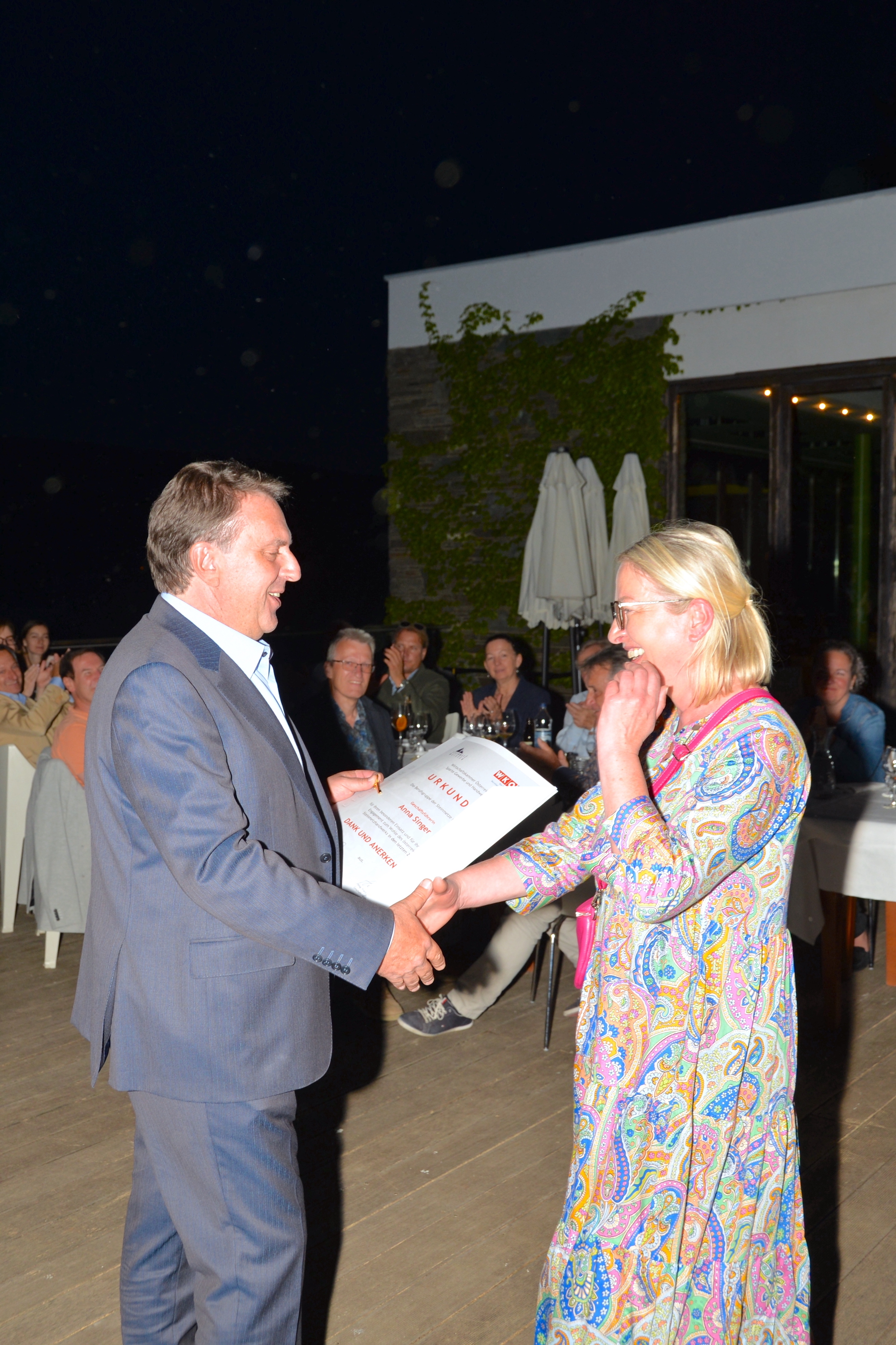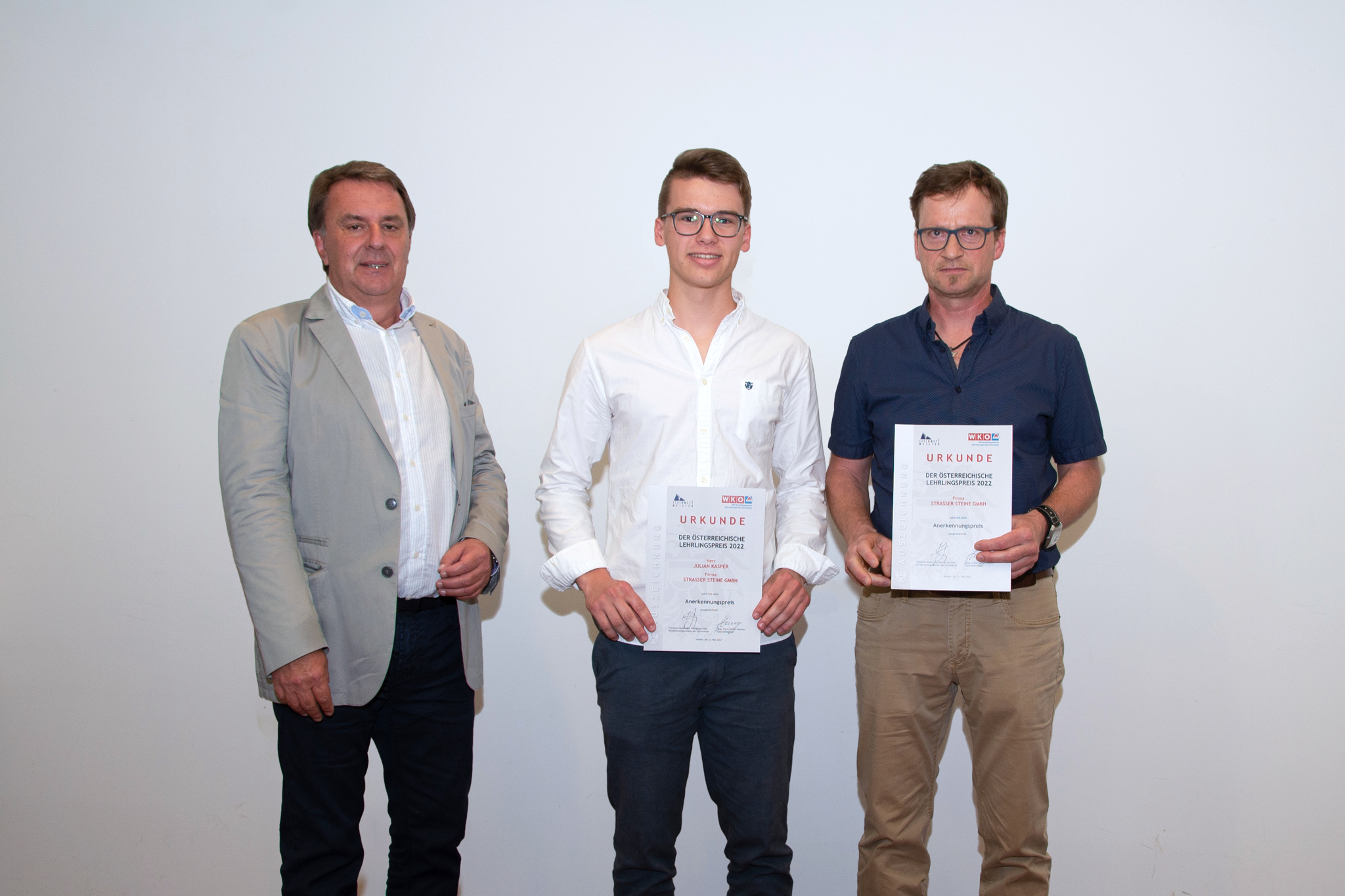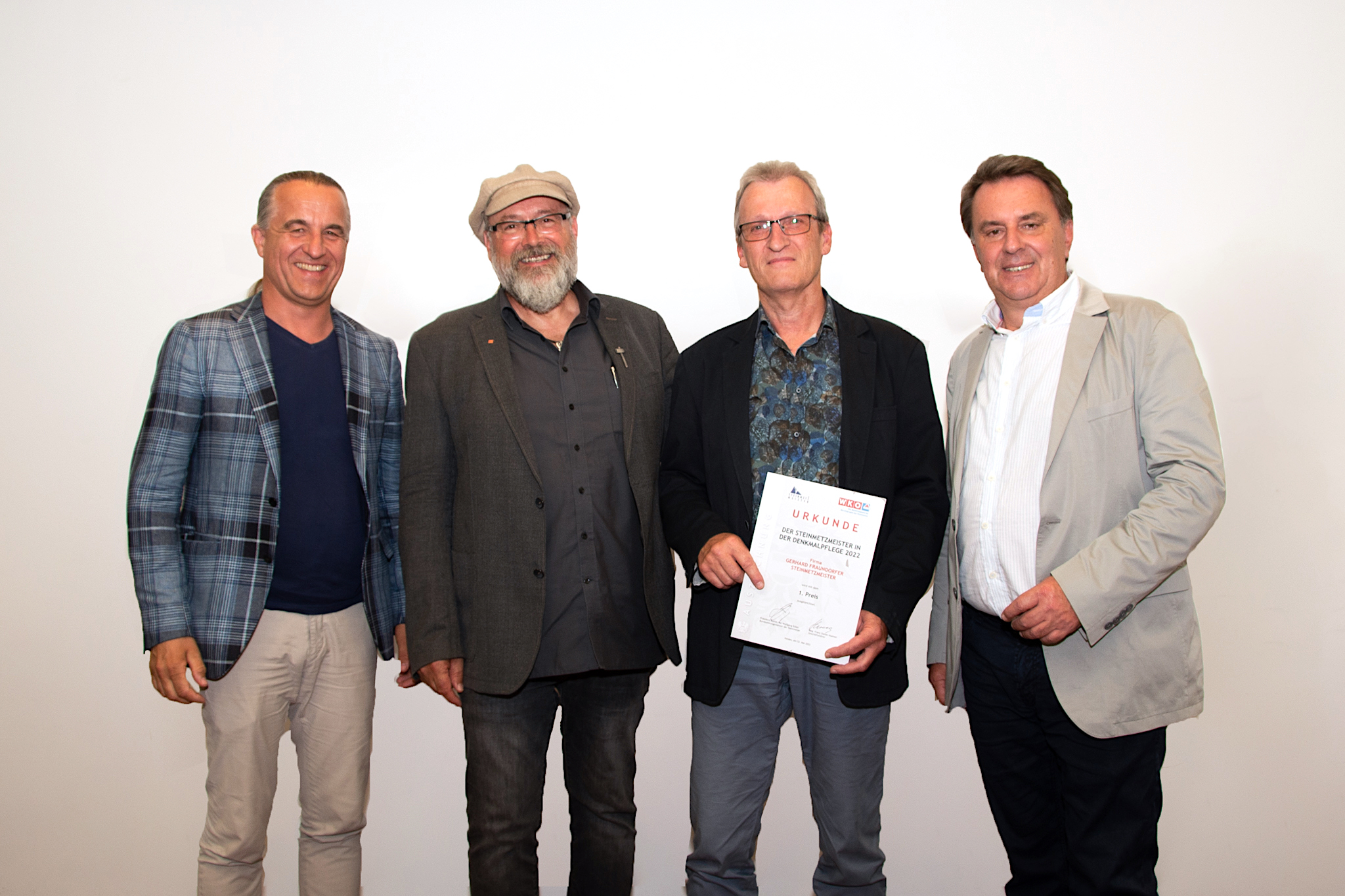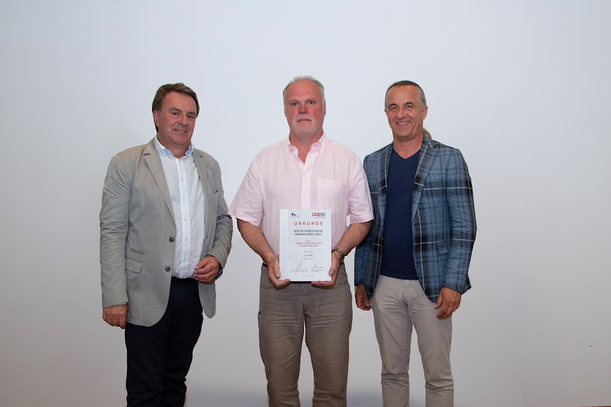 Ein wichtiges Highlight war die feierliche Verleihung der Natursteinpreise 2022: Dr. Arnold Rheintaler übernahm gemeinsam mit Bundesinnungsmeister Wirtschaftskammerpräsident NÖ KommR. Wolfgang Ecker die ehrenvolle Aufgabe Steinmetze für ihre herausragenden Tätigkeiten zu prämieren und ehren. Dabei durften sich besonders die jungen Steinmetze, wie u.a. von der Fachschule für Steingestaltung und Steintechnik in Hallein über den 1. Platz des „Lehrlingspreises“, mit dem Projekt „Kräuterschuh High Heel“ freuen. „Hier sehen Sie die Zukunft unserer Branche“, lobte Wolfgang Ecker die Fachschüler und betont dabei die Wichtigkeit der fachlichen Ausbildung als Steinmetz. Der 2. Platz ging an die LBS Schrems mit dem Projekt „Stehtisch mit Bedeutung“ und der 3. Platz an die LBS Murau mit dem Projekt „Bücherstapel der besonderen Art“.