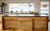 Die Bauherrin wollte sich in der Küche einen Mittelpunkt aus Naturmaterialien schaffen und endschied sich für Holz & Stein.