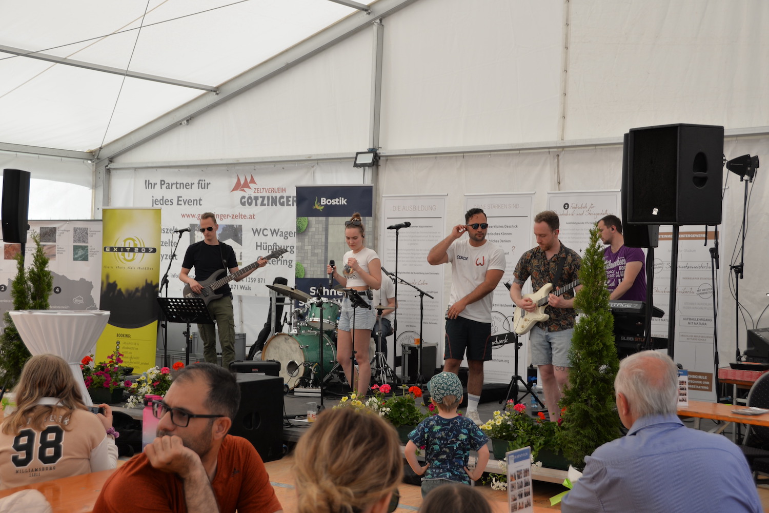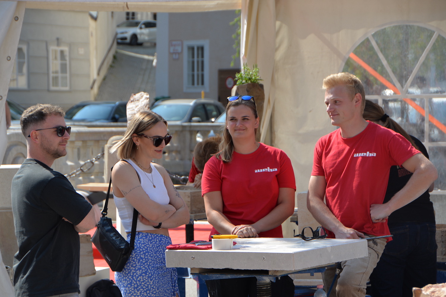 Während die Steinmetze eifrig an ihren Werkstücken arbeiteten, gab es für Besucher des Steinfestivals noch mehr zu erleben. Eine lebende Werkstätte und eine Mitmach-Station bei der man sich selbst als Steinmetz versuchen konnte fand vor allem bei den jüngsten Besuchern großen Anklang. Auch die Ausstellung der Design-Objekte der HTL Hallein wurde viel bestaunt. Im Festzelt wartete nicht nur Verpflegung auf die Gäste, sondern es wurde abends auch Livemusik mit der „Band Exit 207“ geboten und viele nutzen die Chance auf ein gemütliches Beisammensein.
