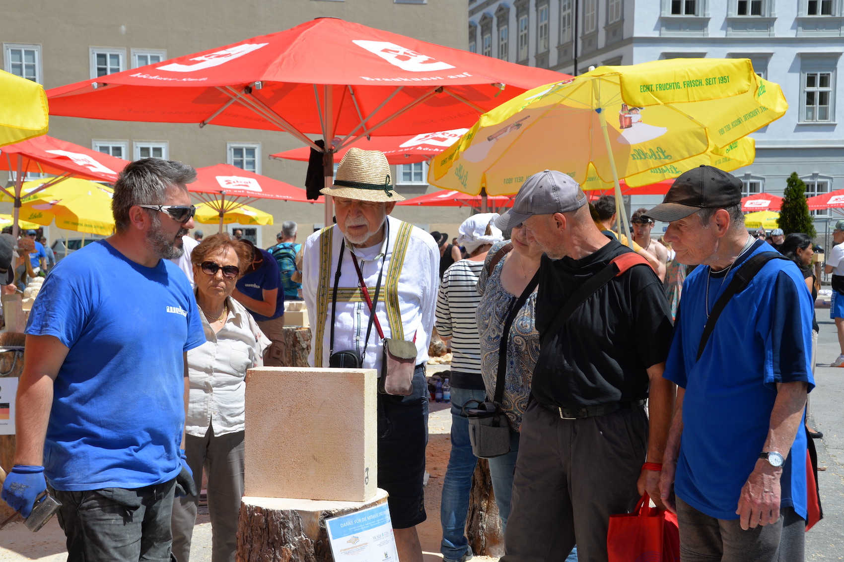 Beim Europäischen Steinfestival 2023 reisten die Teilnehmer aus ganz Österreich, Deutschland, England, Schweiz, Italien, Frankreich und Ungarn an. Sogar Steinmetze aus Kanada und Peru ließen es sich nicht nehmen in ihrer Freizeit dabei zu sein und ihren Beruf in Salzburg gemeinsam zu feiern. Dank des hohen Gemeinschaftssinns in der internationalen Steinmetz-Community, dem wunderbar sonnigen Wetter und sehr vielen Besucher war die Stimmung am Kapitelplatz in Salzburg ausgezeichnet.