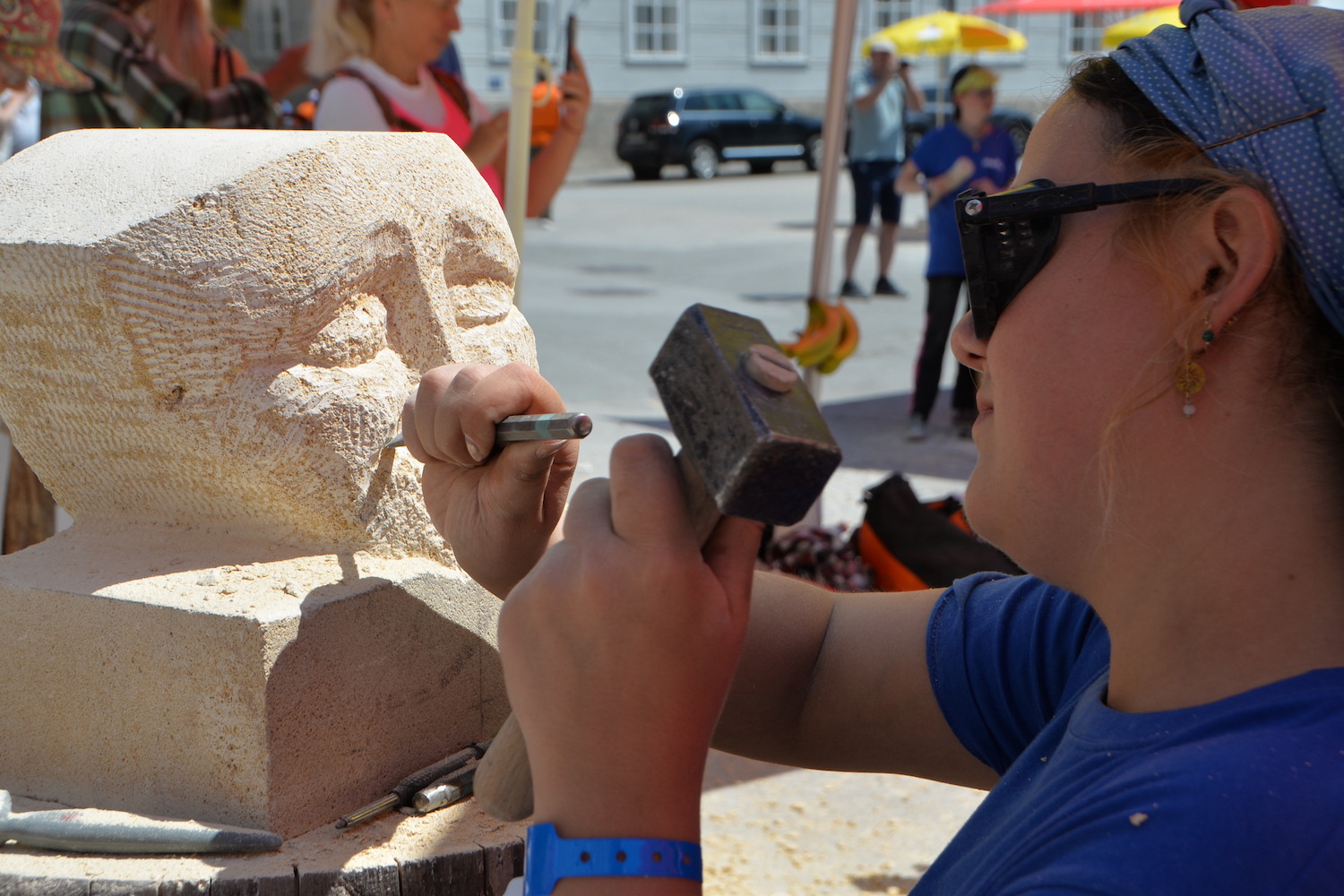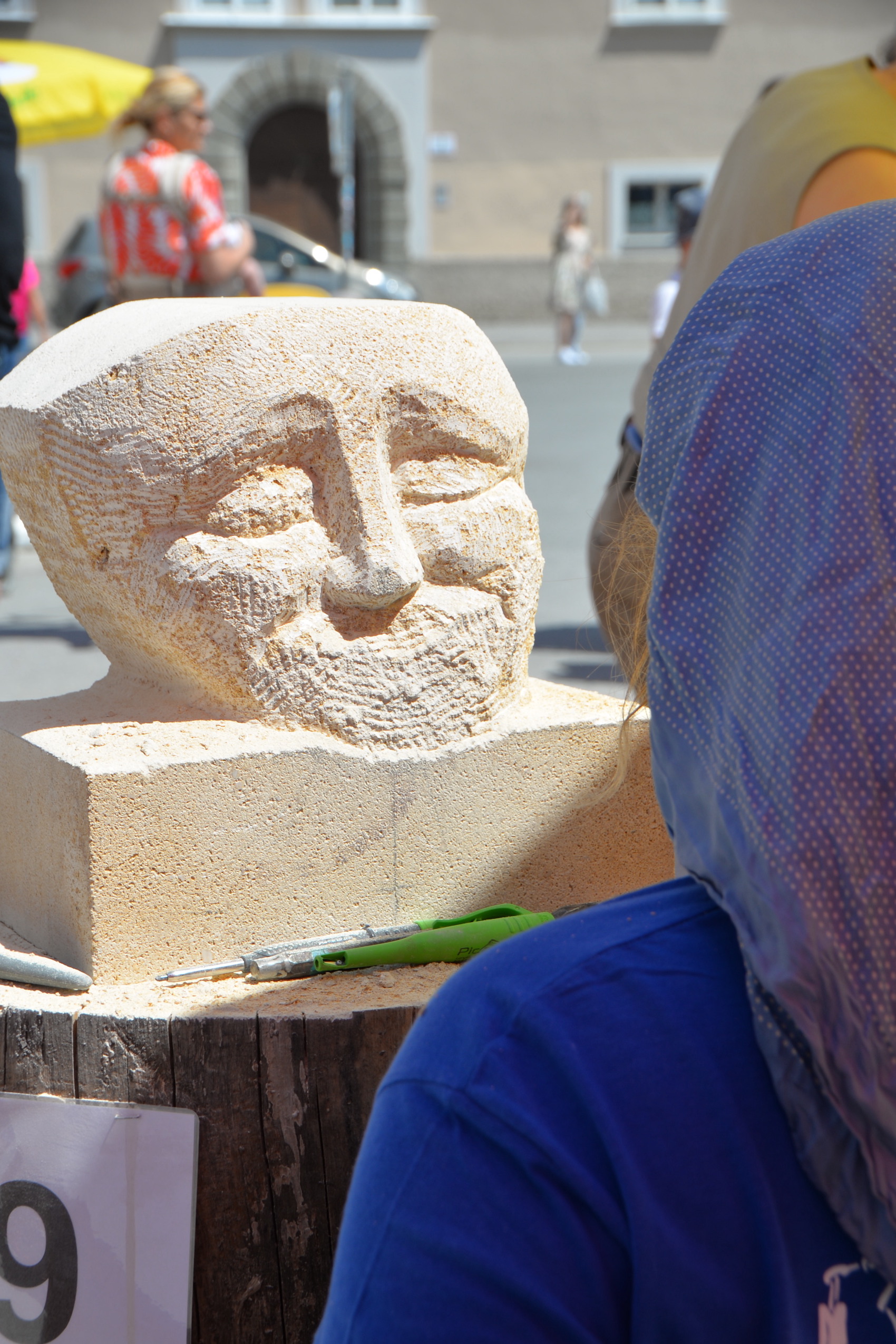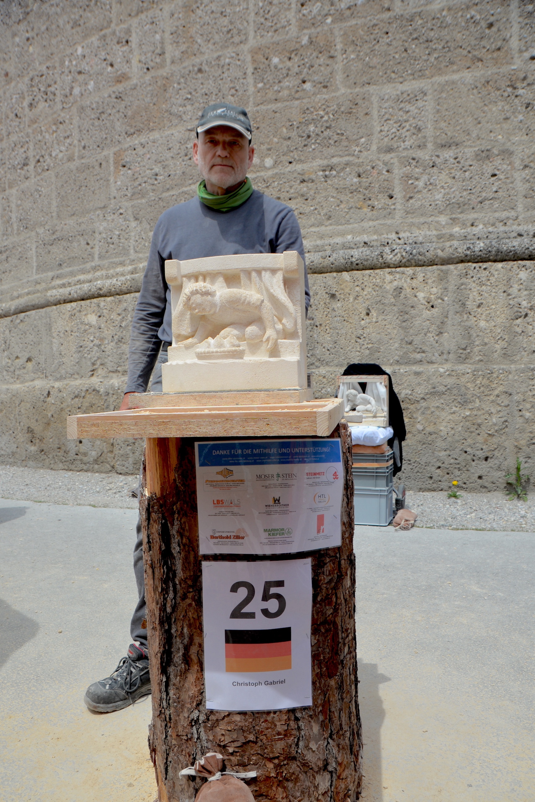 Am 03. und 04. Juni 2023 stand der Kapitelplatz in Salzburg ganz im Zeichen der Steinmetz-Kunst. Rund 110 Teilnehmende aus 12 verschiedenen Nationen demonstrierten live vor Ort ihr Können. Zahlreiche Besucher blickten begeistert den internationalen Steinmetzen und Bildhauern dabei über die Schulter, während diese im Wettbewerb ihre Skulpturen zum Thema „103 Jahre Salzburger Festspiele“ aus St. Margarethener Kalksandstein meißelten. Auch die Fachschule für Steintechnik und Steingestaltung der HTL Hallein feierte mit einer Präsentation von Designprojekten ihr 125-jähriges Bestehen im Zuge des Steinfestivals und stellte ihre Ausbildungsschwerpunkte vor. Beeindruckend war der Klang von über hundert hämmernden und meißelnden Steinmetzen im Herzen der Salzburger Altstadt.