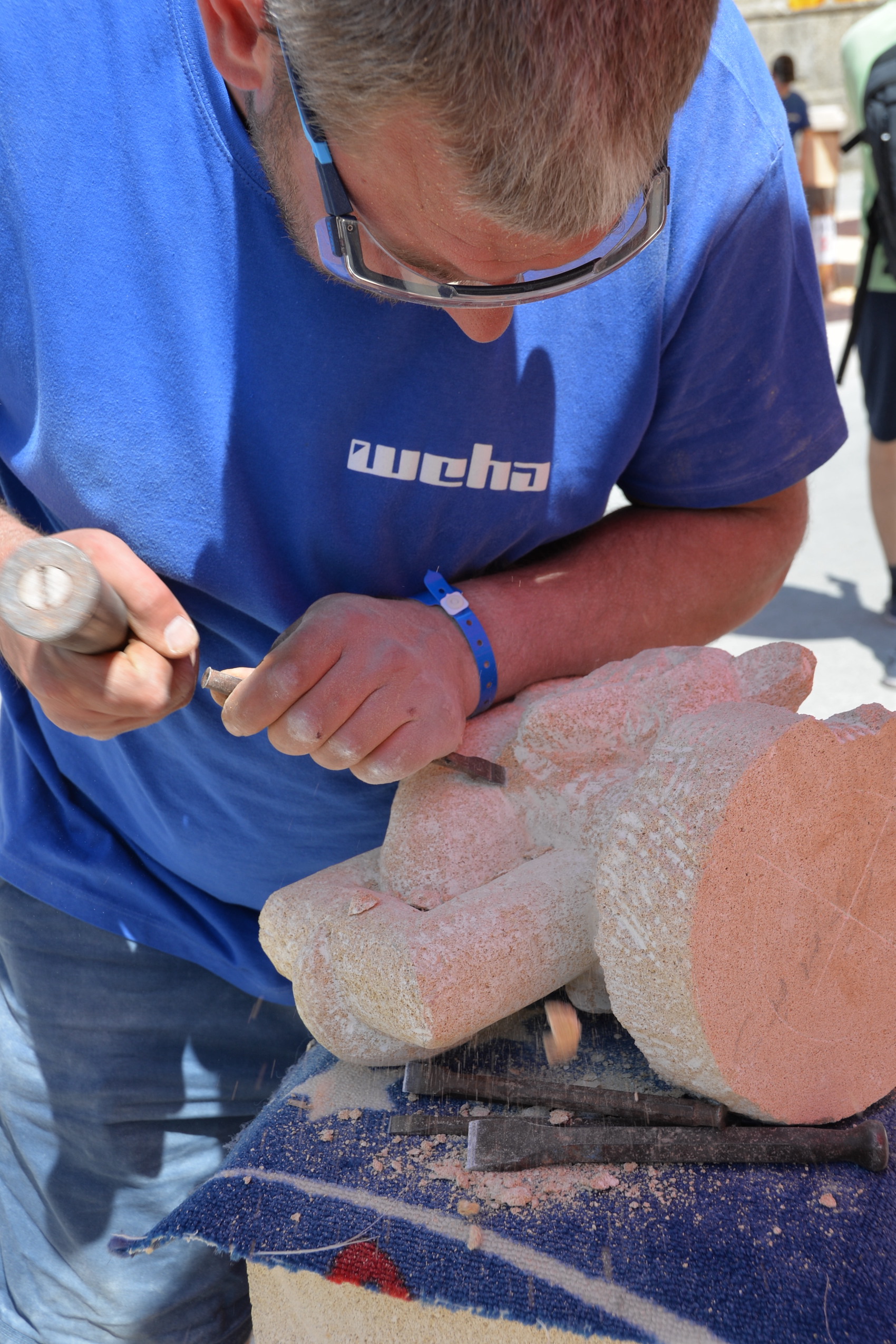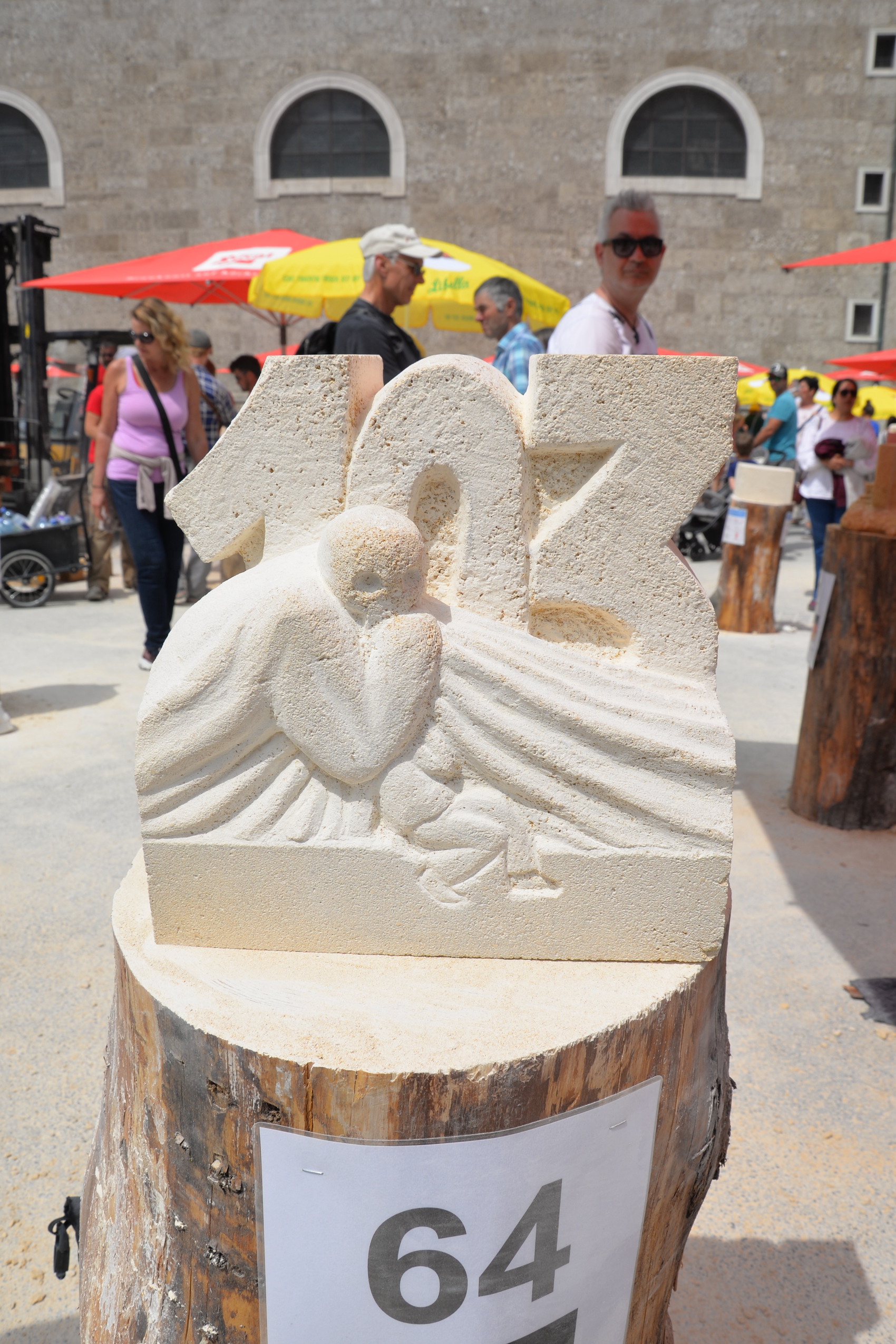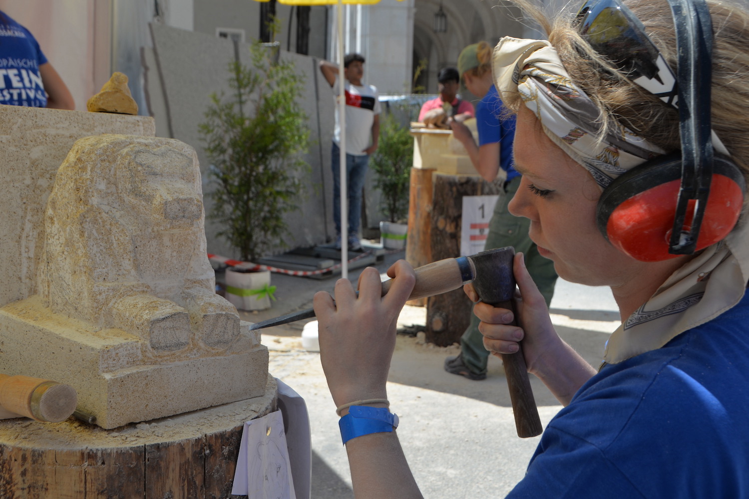 Am 03. und 04. Juni 2023 stand der Kapitelplatz in Salzburg ganz im Zeichen der Steinmetz-Kunst. Rund 110 Teilnehmende aus 12 verschiedenen Nationen demonstrierten live vor Ort ihr Können. Zahlreiche Besucher blickten begeistert den internationalen Steinmetzen und Bildhauern dabei über die Schulter, während diese im Wettbewerb ihre Skulpturen zum Thema „103 Jahre Salzburger Festspiele“ aus St. Margarethener Kalksandstein meißelten. Auch die Fachschule für Steintechnik und Steingestaltung der HTL Hallein feierte mit einer Präsentation von Designprojekten ihr 125-jähriges Bestehen im Zuge des Steinfestivals und stellte ihre Ausbildungsschwerpunkte vor. Beeindruckend war der Klang von über hundert hämmernden und meißelnden Steinmetzen im Herzen der Salzburger Altstadt.