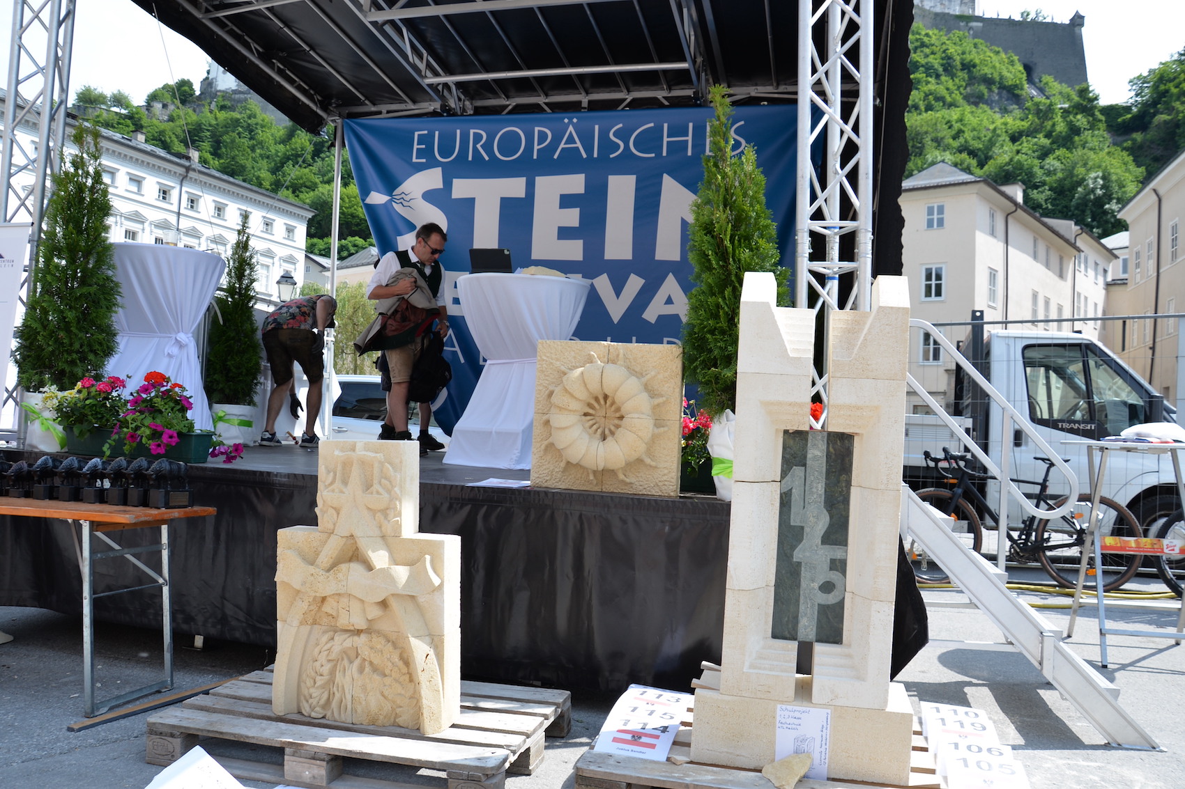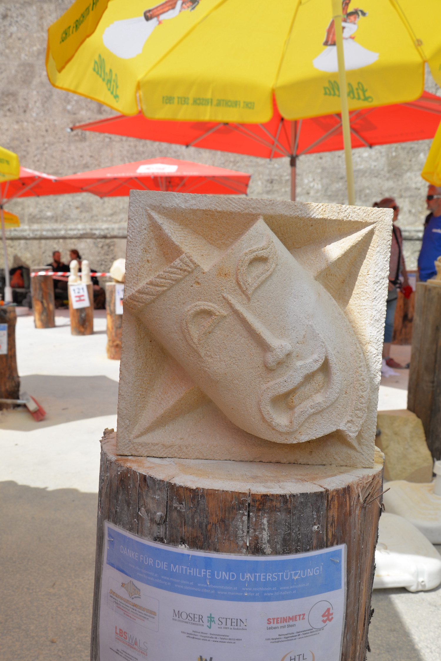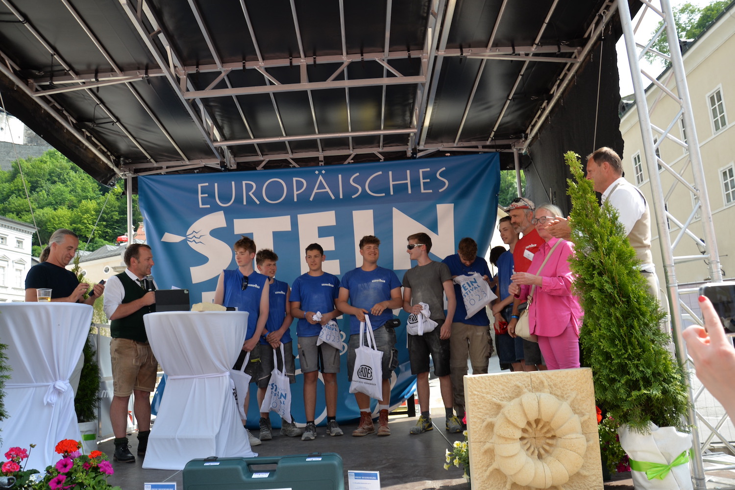 Am 03. und 04. Juni 2023 stand der Kapitelplatz in Salzburg ganz im Zeichen der Steinmetz-Kunst. Rund 110 Teilnehmende aus 12 verschiedenen Nationen demonstrierten live vor Ort ihr Können. Zahlreiche Besucher blickten begeistert den internationalen Steinmetzen und Bildhauern dabei über die Schulter, während diese im Wettbewerb ihre Skulpturen zum Thema „103 Jahre Salzburger Festspiele“ aus St. Margarethener Kalksandstein meißelten. Auch die Fachschule für Steintechnik und Steingestaltung der HTL Hallein feierte mit einer Präsentation von Designprojekten ihr 125-jähriges Bestehen im Zuge des Steinfestivals und stellte ihre Ausbildungsschwerpunkte vor. Beeindruckend war der Klang von über hundert hämmernden und meißelnden Steinmetzen im Herzen der Salzburger Altstadt.