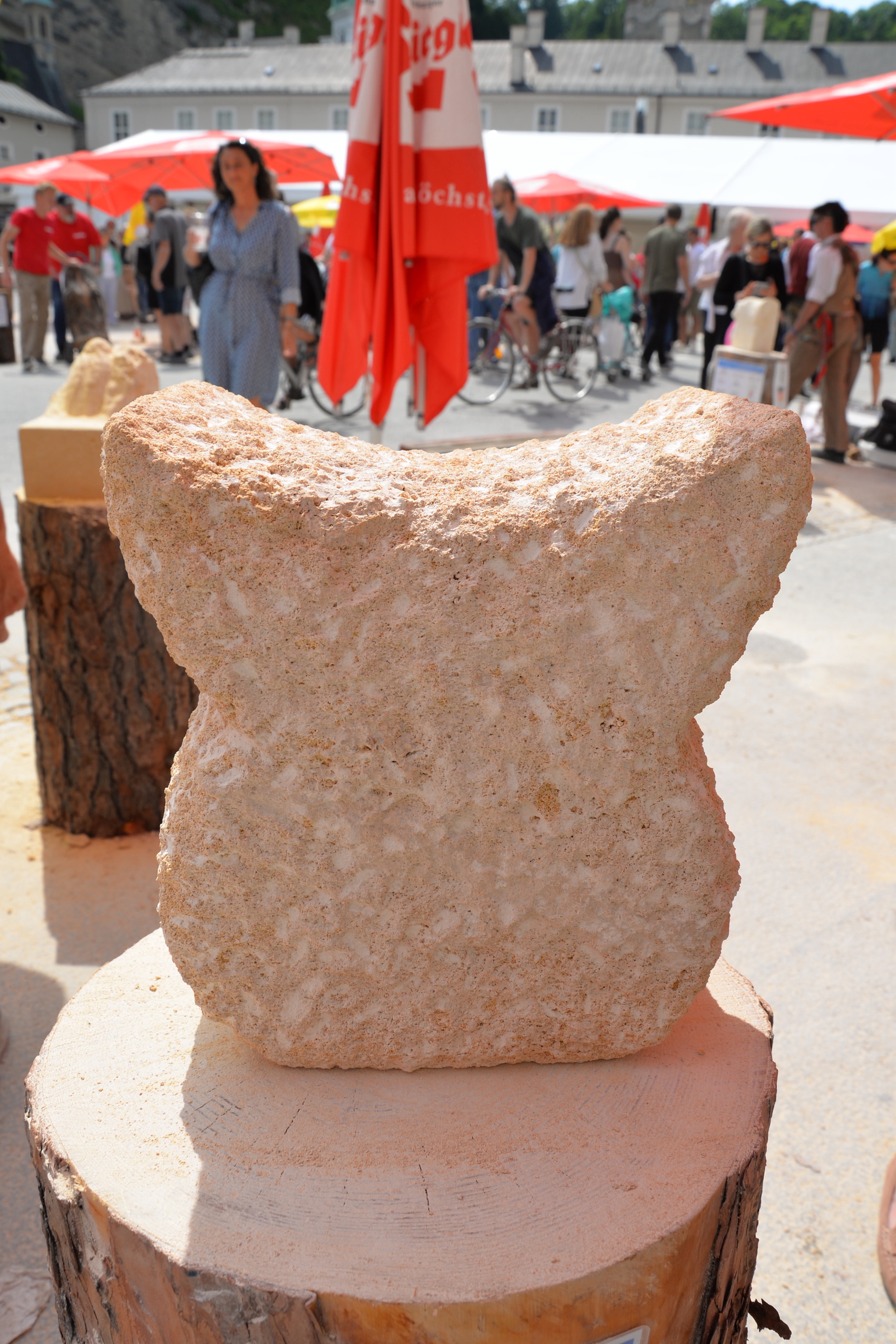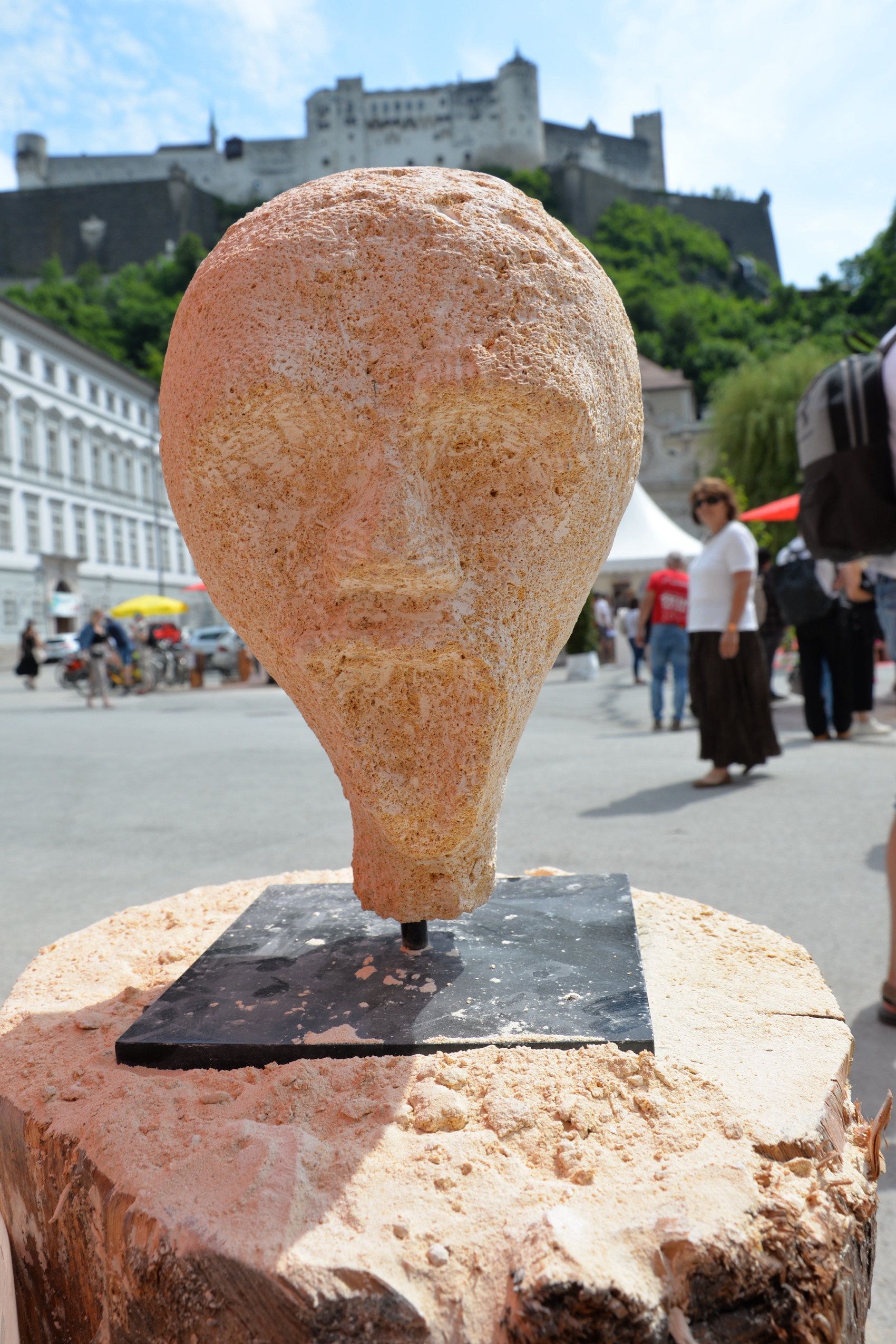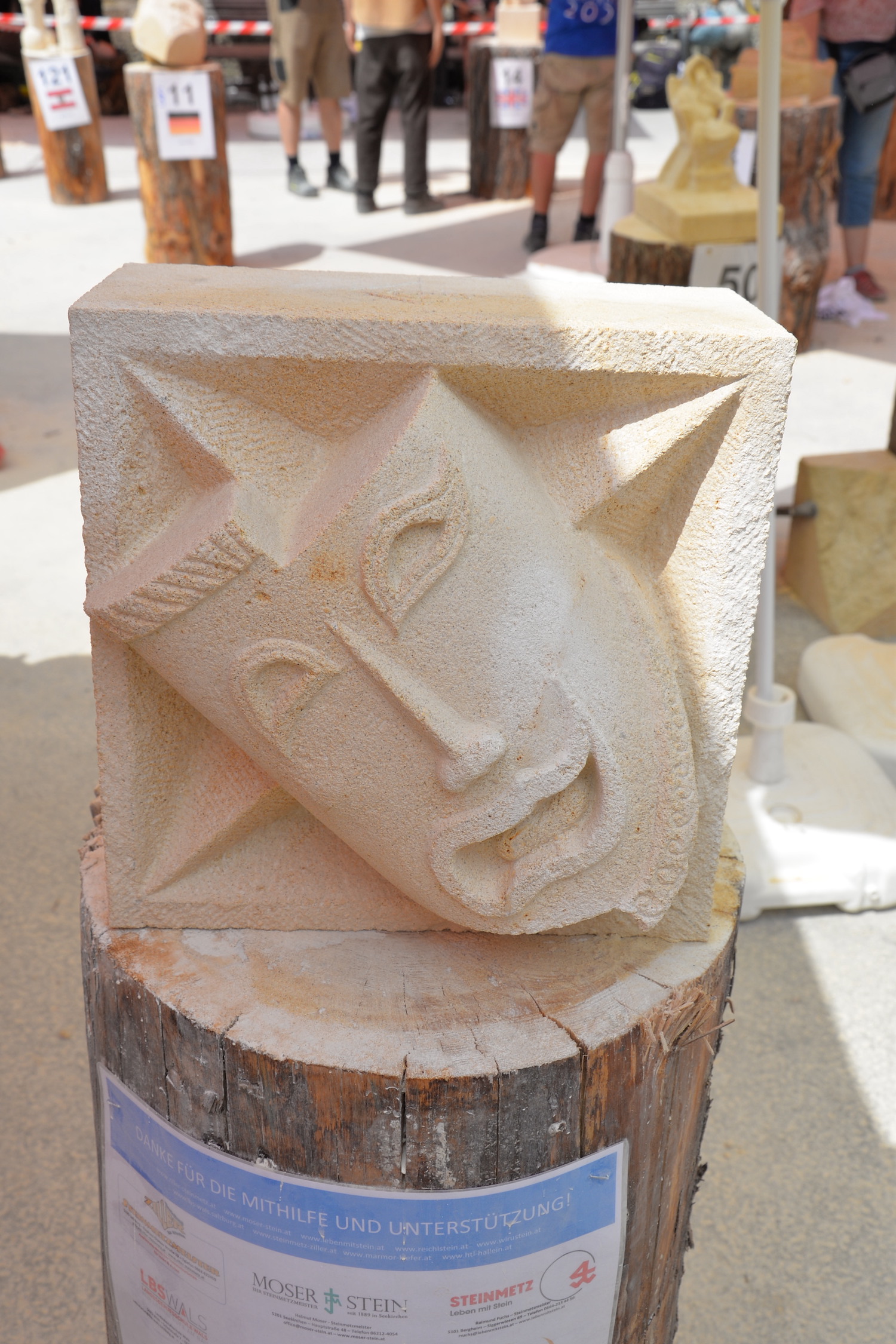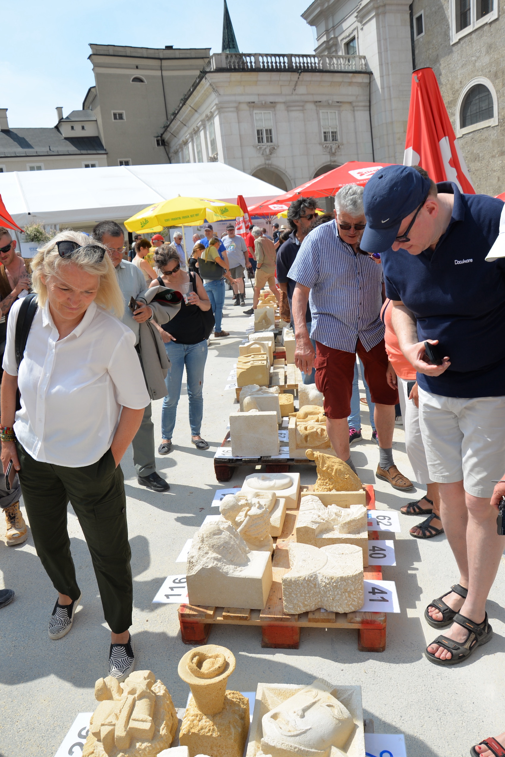 Am 03. und 04. Juni 2023 stand der Kapitelplatz in Salzburg ganz im Zeichen der Steinmetz-Kunst. Rund 110 Teilnehmende aus 12 verschiedenen Nationen demonstrierten live vor Ort ihr Können. Zahlreiche Besucher blickten begeistert den internationalen Steinmetzen und Bildhauern dabei über die Schulter, während diese im Wettbewerb ihre Skulpturen zum Thema „103 Jahre Salzburger Festspiele“ aus St. Margarethener Kalksandstein meißelten. Auch die Fachschule für Steintechnik und Steingestaltung der HTL Hallein feierte mit einer Präsentation von Designprojekten ihr 125-jähriges Bestehen im Zuge des Steinfestivals und stellte ihre Ausbildungsschwerpunkte vor. Beeindruckend war der Klang von über hundert hämmernden und meißelnden Steinmetzen im Herzen der Salzburger Altstadt.