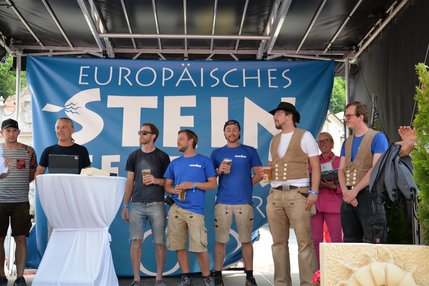 Beim Europäischen Steinfestival 2023 reisten die Teilnehmer aus ganz Österreich, Deutschland, England, Schweiz, Italien, Frankreich und Ungarn an. Sogar Steinmetze aus Kanada und Peru ließen es sich nicht nehmen in ihrer Freizeit dabei zu sein und ihren Beruf in Salzburg gemeinsam zu feiern. Dank des hohen Gemeinschaftssinns in der internationalen Steinmetz-Community, dem wunderbar sonnigen Wetter und sehr vielen Besucher war die Stimmung am Kapitelplatz in Salzburg ausgezeichnet.