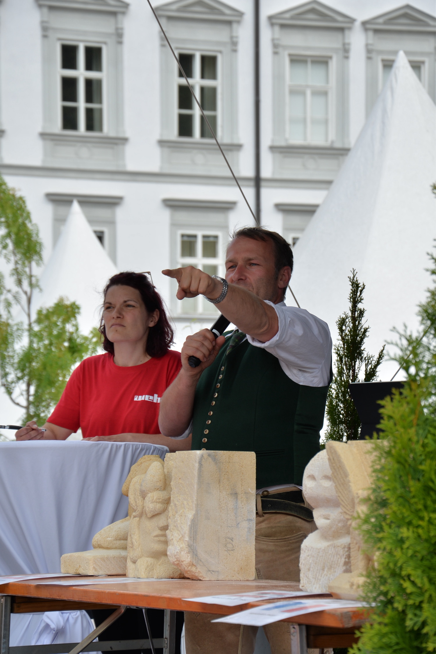 Im Rahmen einer feierlichen Eröffnung durfte der Moderator Georg Pollak mehrere Festredner auf der Bühne des Steinfestivals begrüßen. Dr. Elisabeth Kandler-Mayr, Ordinariatskanzlerin der Erzdiözese Salzburg ging auf die Verflechtung und Tradition von Naturstein und Kultur in Salzburg ein und Landesrätin Mag. Daniela Gutschi freute sich über das „Klingen des Steins im so steinreichen Salzburg“. Norbert Kienesberger, Bundesinnungsmeister-Stv. der Steinmetze Österreichs richtete Grußworte an alle nationalen und internationalen Gäste des Festivals und Veranstaltungs-Initiator Helmut Moser hatte schließlich die Ehre allen Teilnehmer ein zünftiges „Glück auf!“ zu wünschen.