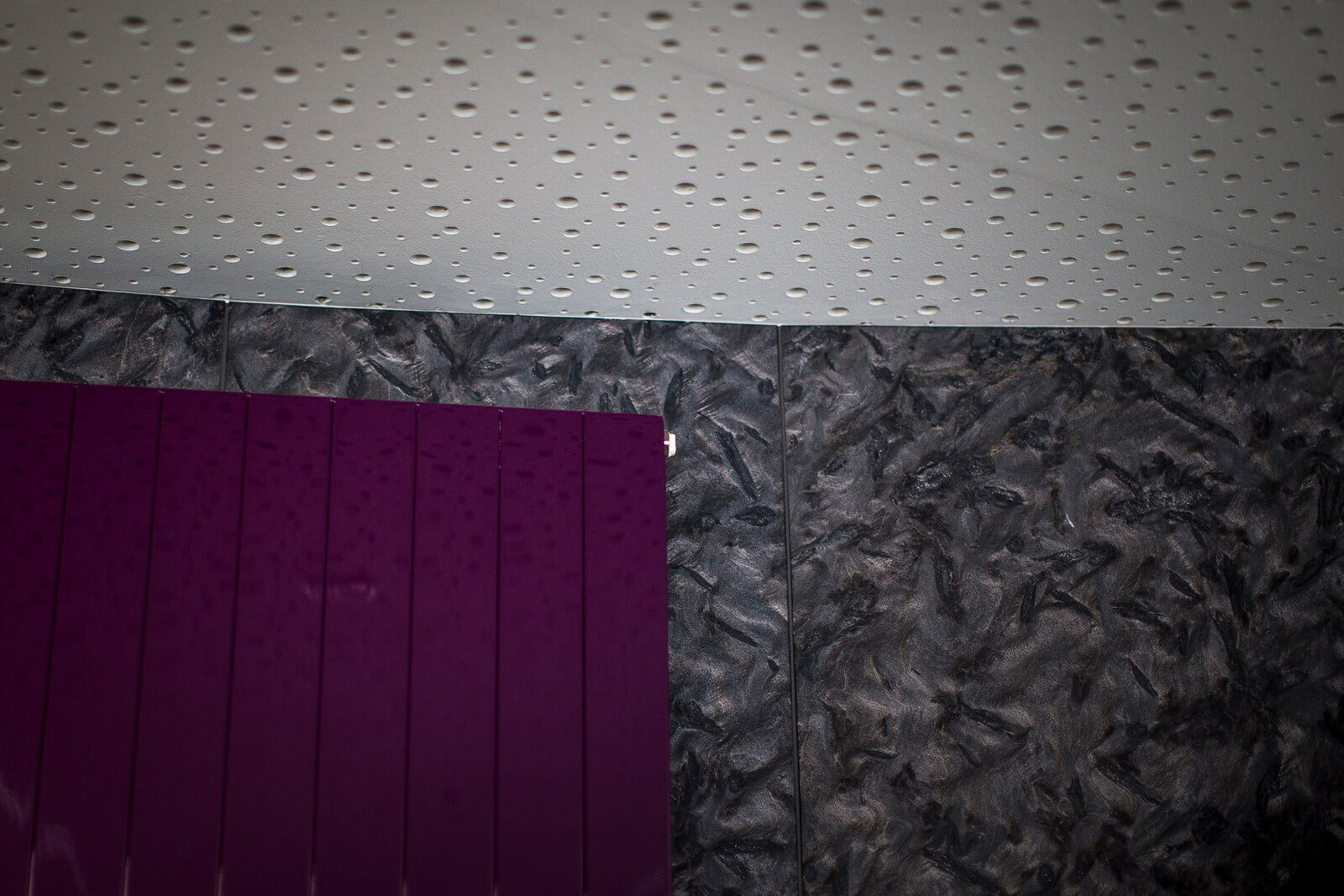 Die kreisrunde „Garage“ mit 16m! Durchmesser wurde umlaufend mit gebürsteten MATRIX Platten in max. Plattenlänge (= Höhe der Verkleidung) ausgeführt! Jedes Fahrzeug hat „seinen“ Heizkörper in Wagenfarbe lackiert und wenn der Tischler heuer hoffentlich fertig wird bekommt auch der Heizkörper vom Bild rechts unten „Sein“ Fahrzeug – einen Rolls Royce in Dunkel-Magenta!!! NEUGIERIG? - Sollte der Tischler zeitgerecht fertig werden (es gibt auch steinmetzmäßig noch einiges zu tun) gibt’s nächstes Jahr das ganz fertige Projekt mit einem Ausschnitt des Magenta Fahrzeuges!? (Zur Probe haben wir ihn schon einmal eingeparkt!!) Der Matrix wurde gemeinsam mit Architekt/ Bauherrn und Steinmetz direkt in Verona in einer „2- tägigen, anstrengenden Klausur“ (mit orig. Farbkarten der Fahrzeuge) ausgewählt – dieser Naturstein mit seiner spektakulären, aber doch zurückhaltenden Optik/ Haptik war im Nachhinein gesehen die optimale Wahl, ALLE Fahrzeugfarben kommen perfekt zur Geltung.